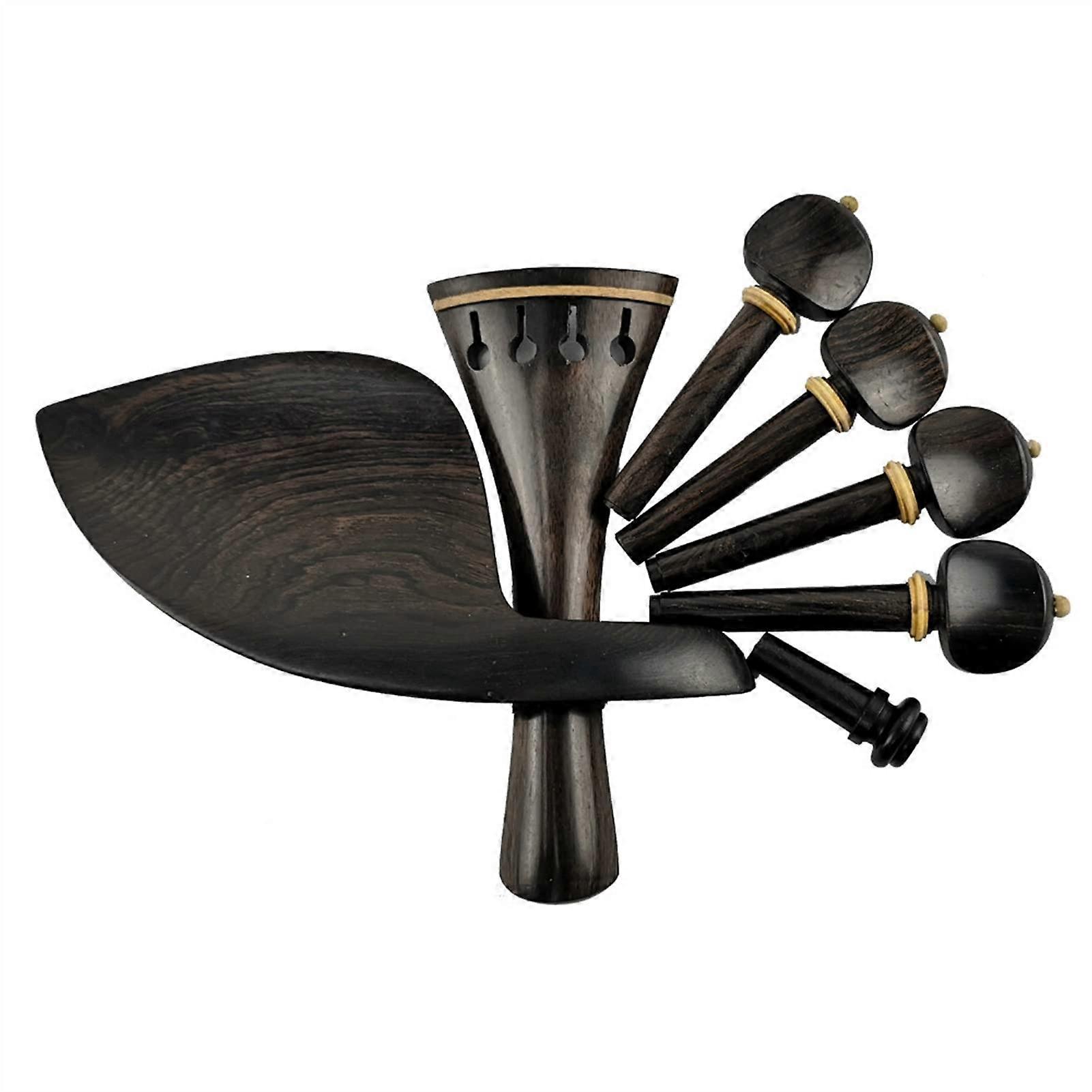 Black 4/4 Violin Set with Ebony Fittings, Wood Ball Back Rest, Chin Rest, Endpin - Complete Violin Parts