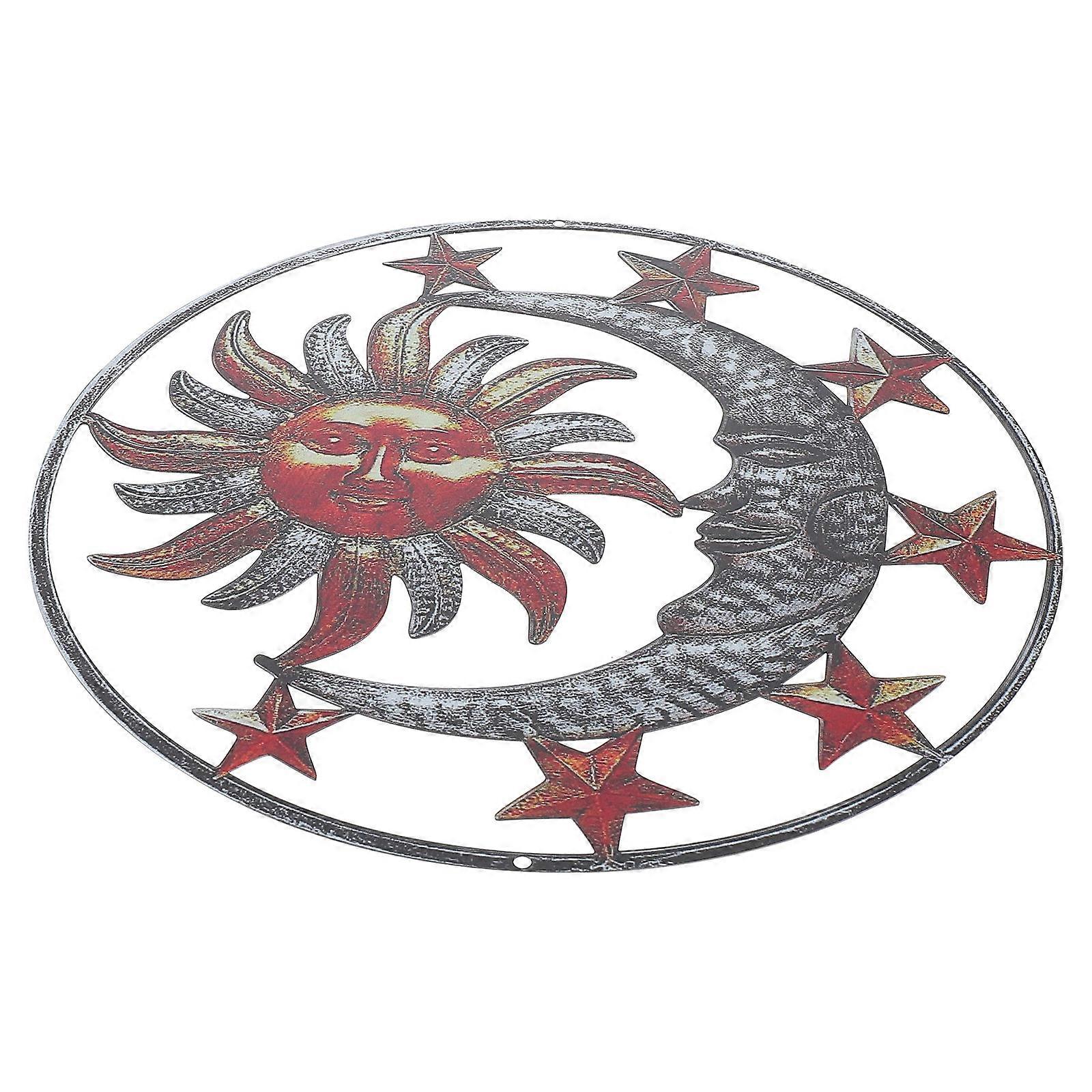 Metal Sun Moon Sculpture Iron Art Ornament Outdoor Wall Decor 29X29CM Brown Wrought Iron Decoration 1Set