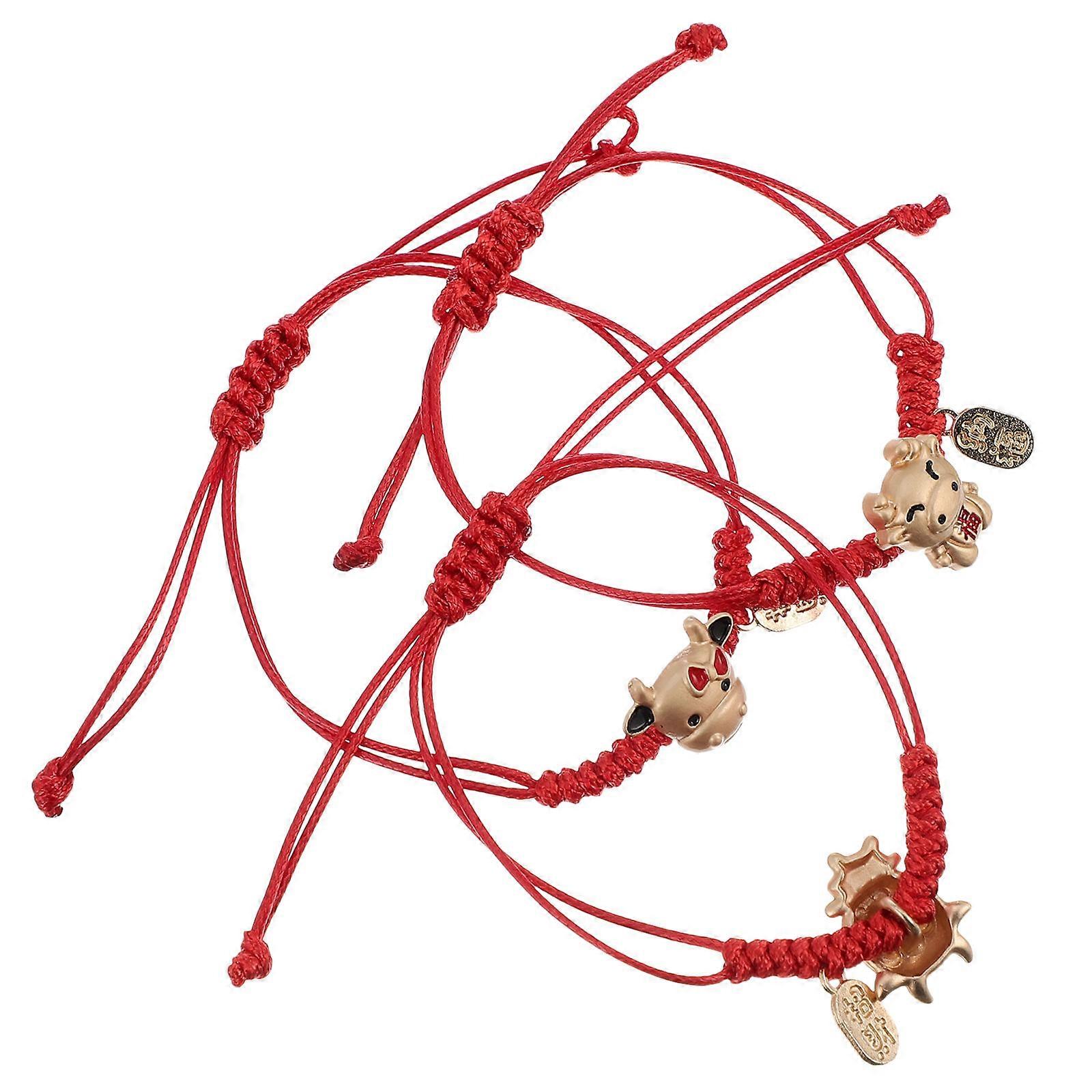 Chinese String Bracelet Creative Ox Year Jewelry Festive Occasions Red Rope Amulet 3Pack
