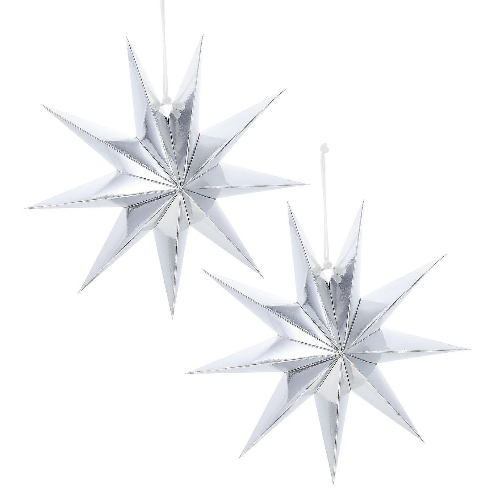 Nine Pointed Paper Star Hanging Lampshades for Decoration 2Pcs Silver