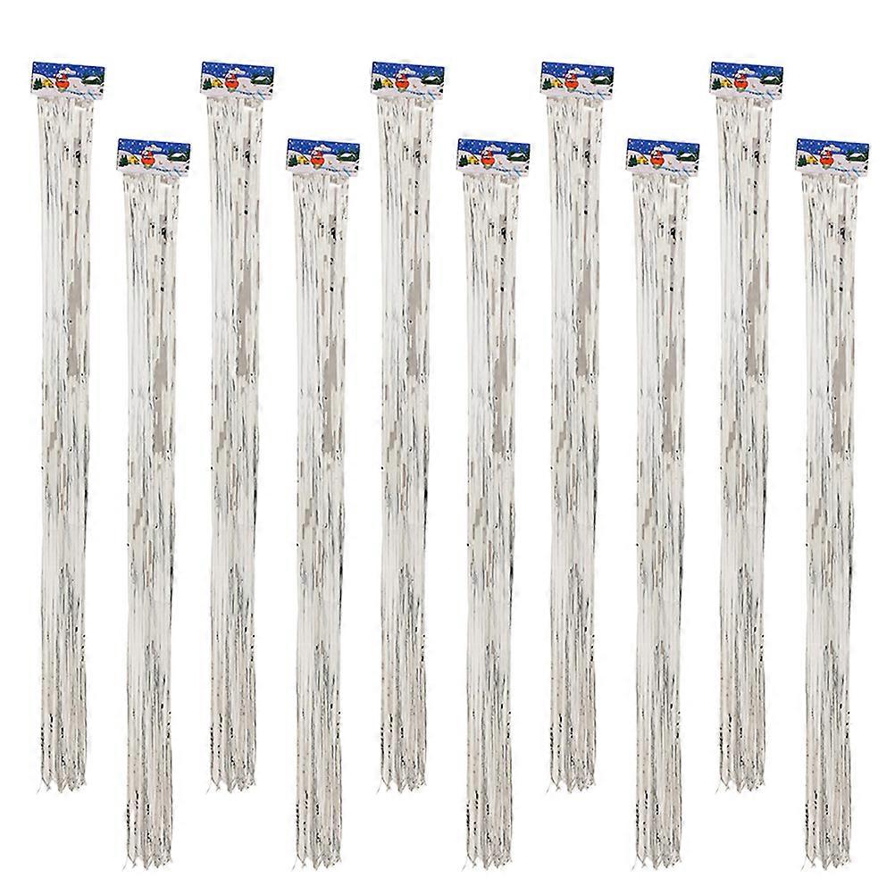 Foil Curtain Backdrop Shiny Balloon Tassel Photo Props Birthday Party Decor Silver 107x10x0.1cm 20Set