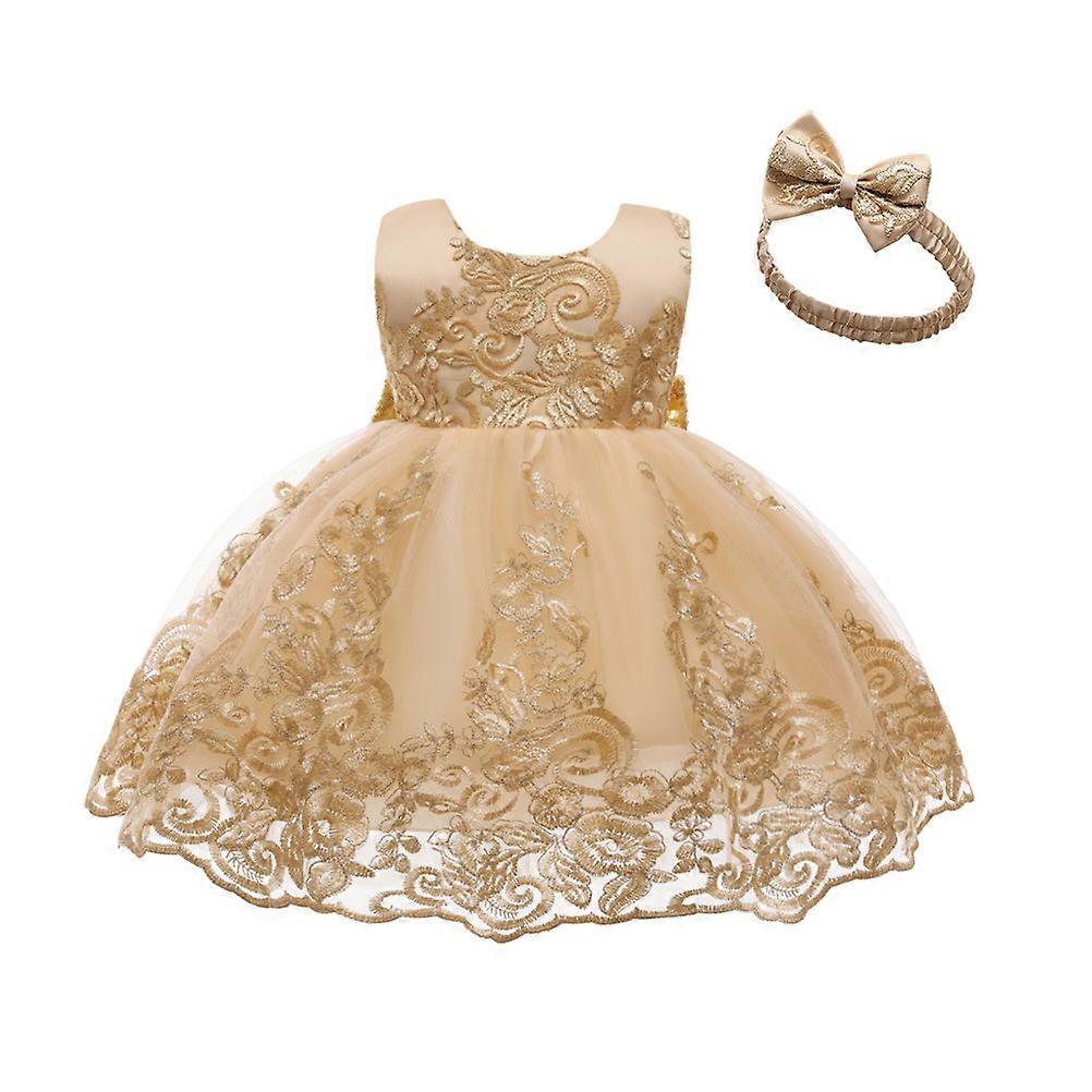 Dress for Kids Toddler Girl Pageant Costume Party Wear Ballet Performance Golden 1Set