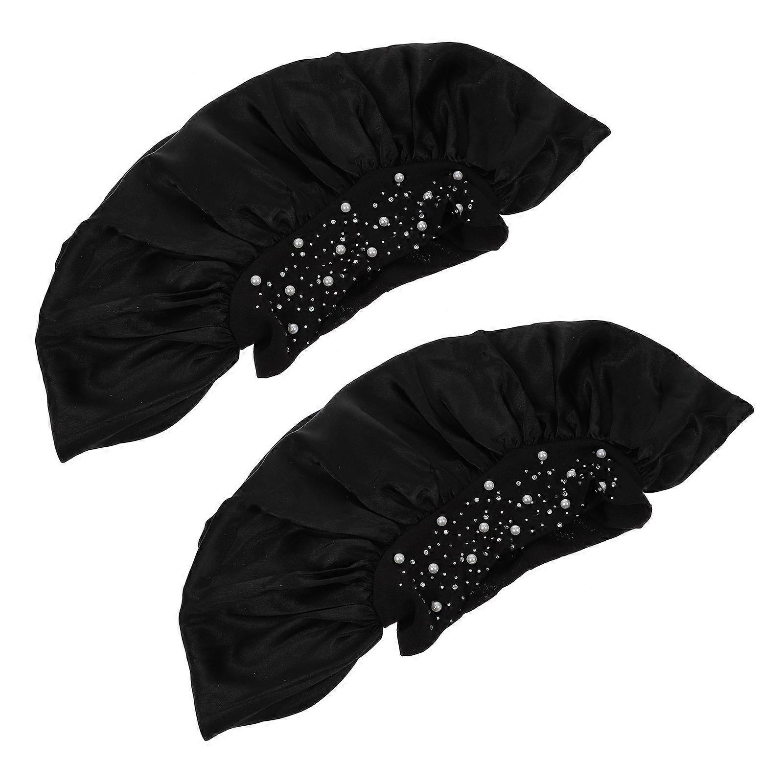 Shower Cap Women Waterproof Prevent Hair from Getting Wet Elastic Band One Size Fits Most Black 2Pack
