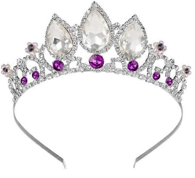 Girls Princess Tangled Crystal Rhinestone Tiara Headband Crown for Prom Halloween Birthday Costume, Silver Purple Design