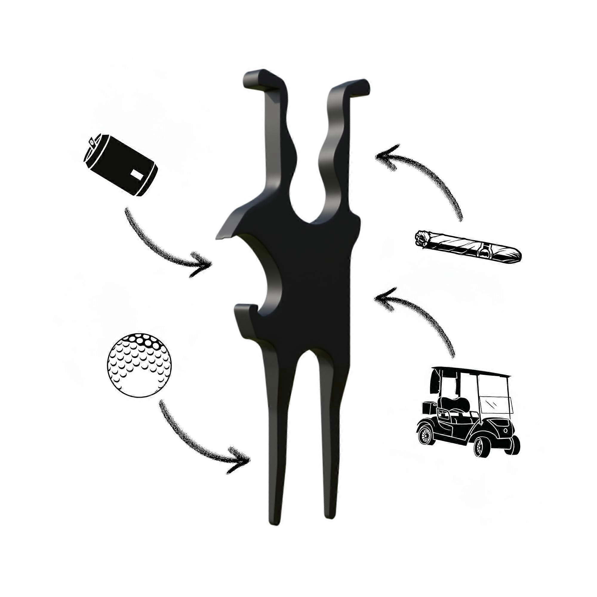 Golf Multi-Tool With Magnetic Cigar Holder, Beer Shotgun And Divot Tool