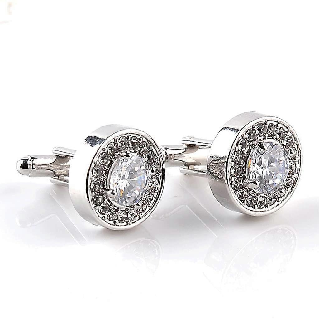 Mens Crystal Round Cufflinks Model B Wedding Tie Clip Set For Men's Shirt