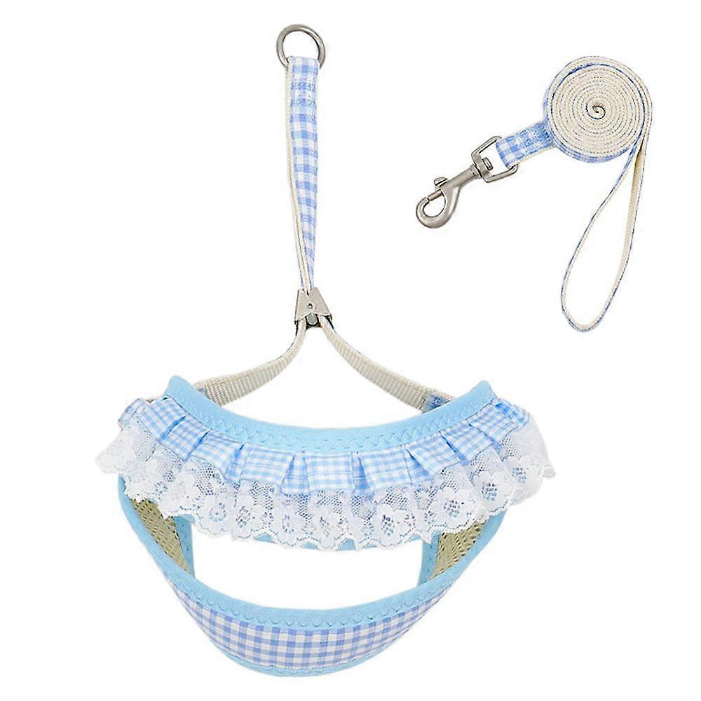 Dog Harness And Lead Set Adjustable Summer Flower Chest Back Lace Design Cat Collar Blue M