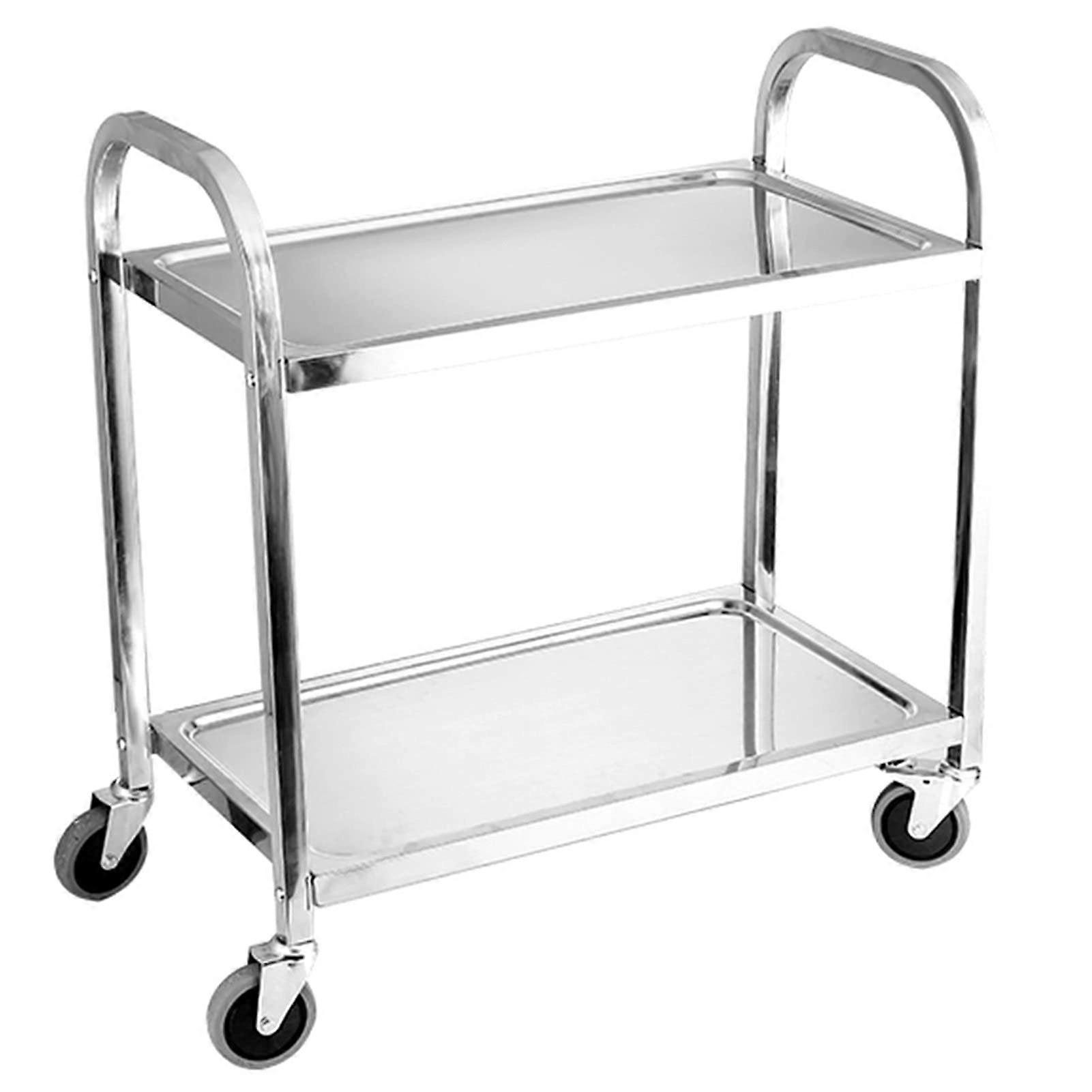 Trolley Serving Trolley Stainless Steel 2 Layer Utility Trolley on Wheels 75x40x83cm Removable Kitchen Shelf with Locking Wheels