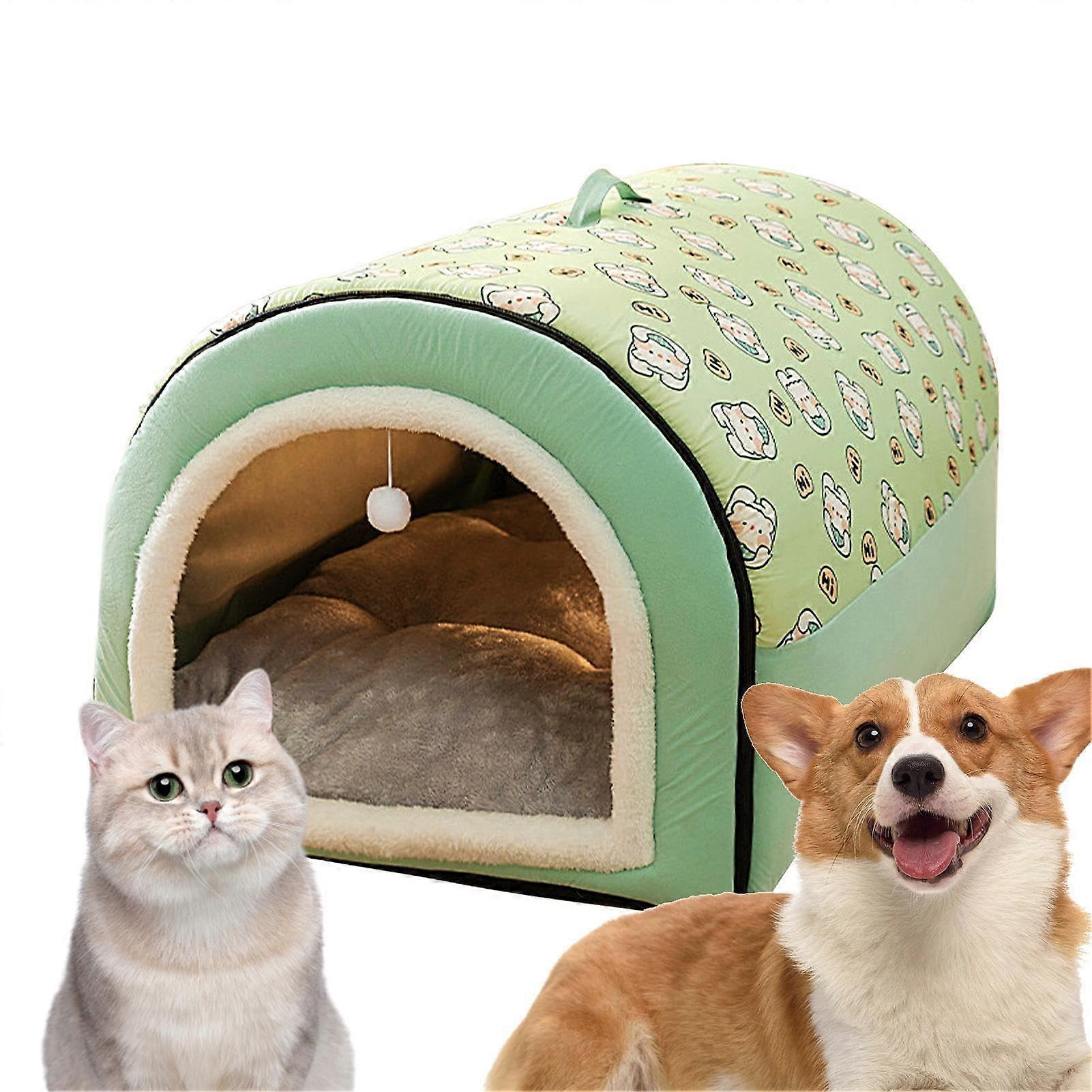 Covered Dog Bed 40 x 35 x 35 cm, Indoor Outdoor Dog House for Large Dogs, Removable Cat Bed in Green M