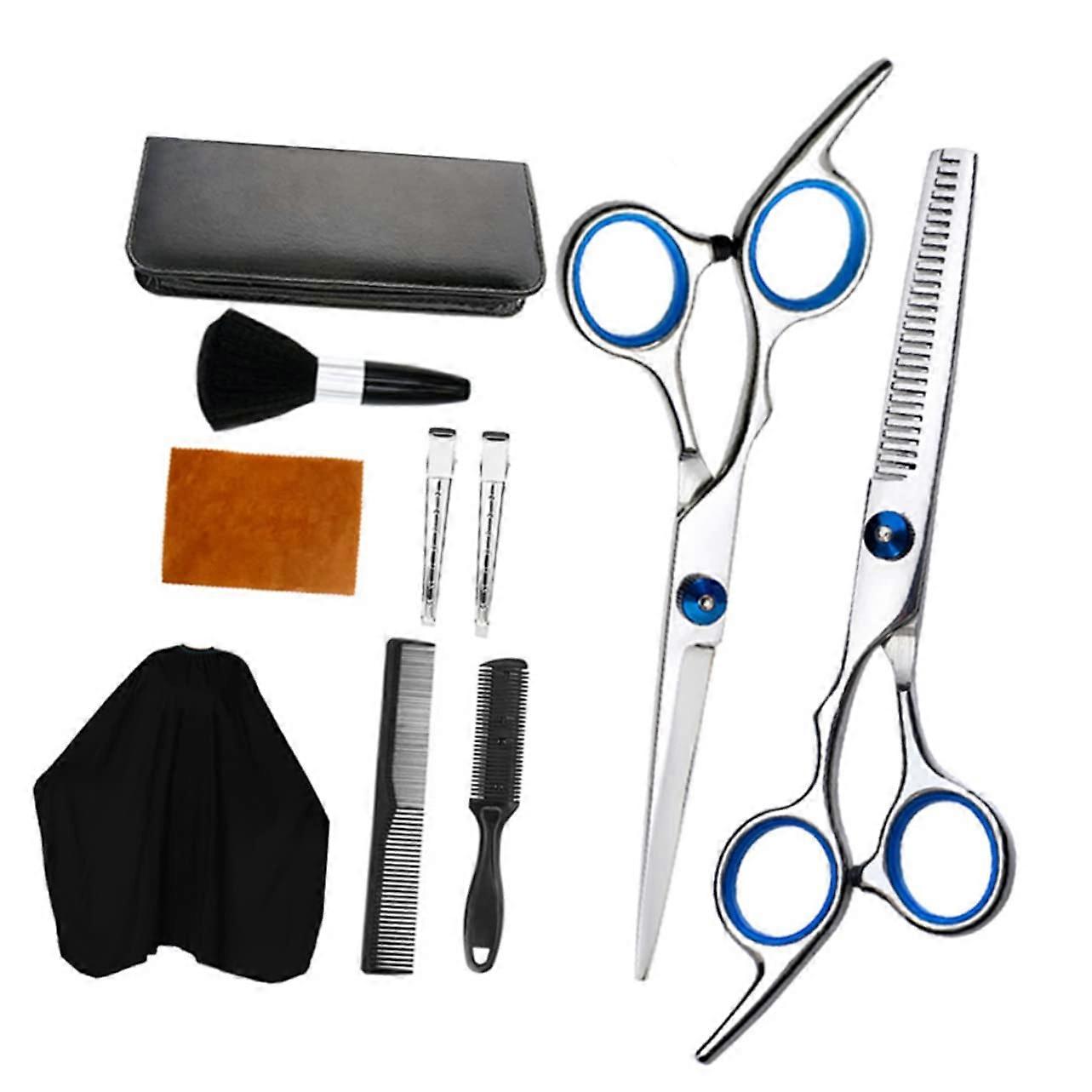 Hair Cutting Scissors Set - 10 Professional Hairdresser Scissors, Thinning Shears, Black Comb, Home Haircut Tools