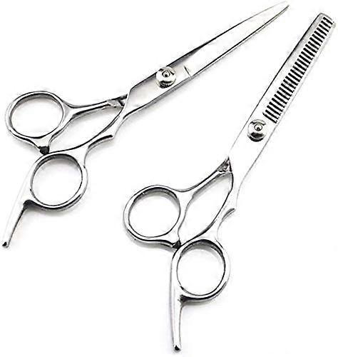 - Premium Hair Cutting Scissors: Crafted from high-quality stainless steel, our hairdressing scissors feature precision blades and hand-sharpened cutting edges, ensuring a smooth and even trim for hair and facial hair. - Exceptional Cutting Performance: Designed with a unique combination of serrated and manually sharpened blades, these scissors offer effortless cutting, making them ideal for both professional hairdressers and home users. - Ergonomic Design: The thoughtfully designed handles minimize excessive thumb and wrist movement, promoting comfort and reducing strain on your elbows and wrists during use. Experience superior control and ease with our ergonomic handles. - Versatile Length Options: Available in two sizes, our scissors are 6.0 inches long with finger rests and 5.5 inches long without finger rests, making them suitable for various cutting techniques. Perfect for men, women, and adults alike. - Practical Use Cases: Whether you're giving yourself a haircut at home, trimming your beard, or performing professional styling in a salon, these scissors deliver exceptional results every time. - Durable and Reliable: Made to withstand regular use, our stainless steel scissors provide longevity and consistent performance, ensuring you can achieve your desired look with confidence. Elevate your grooming experience with our professional-grade hair cutting scissors. Perfect for achieving precision cuts and maintaining your style with ease.