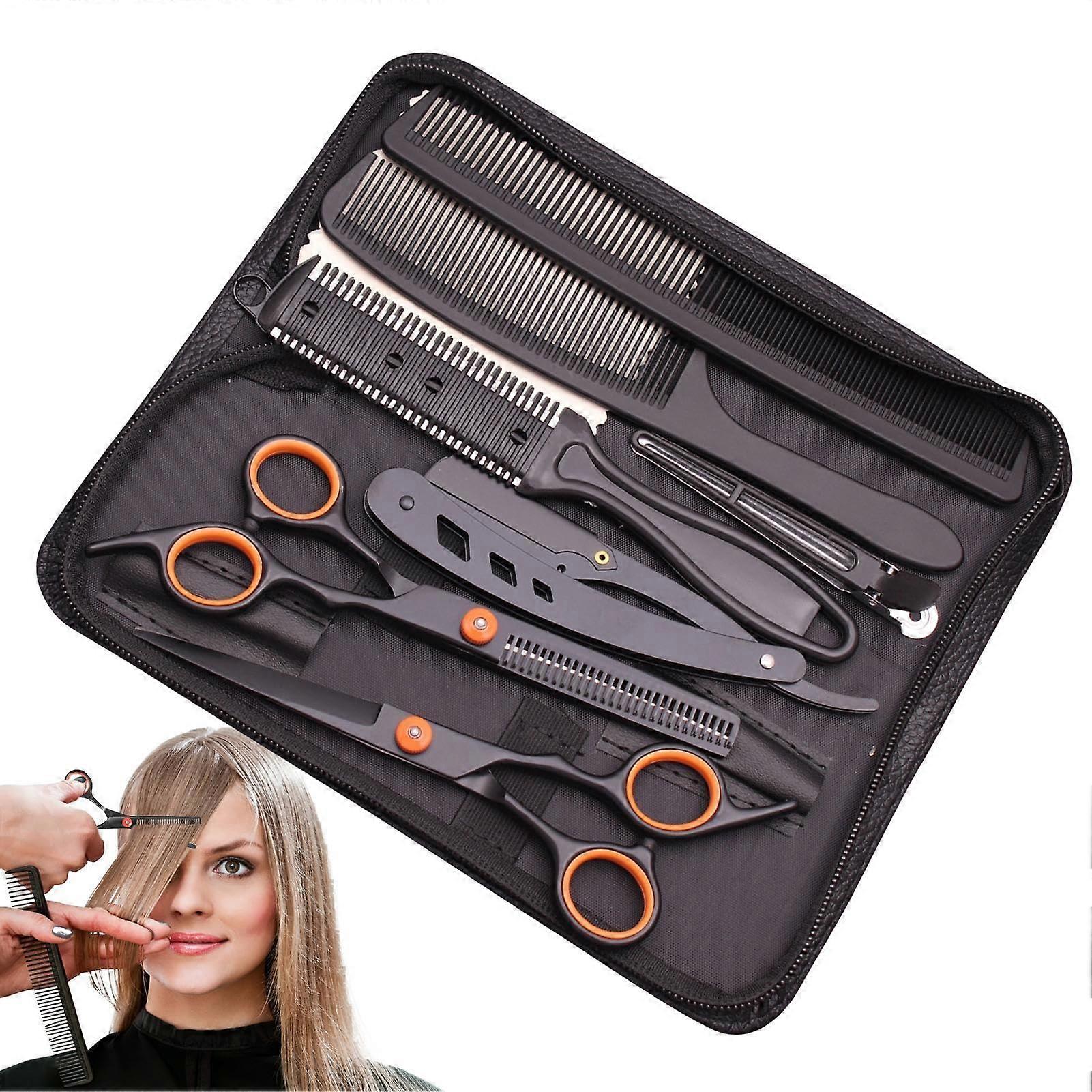 Hair Cutting Set, Stainless Steel Hair Cutting Scissors and Beard Trimming Kit, Flat and Dental Scissors, Orange Color