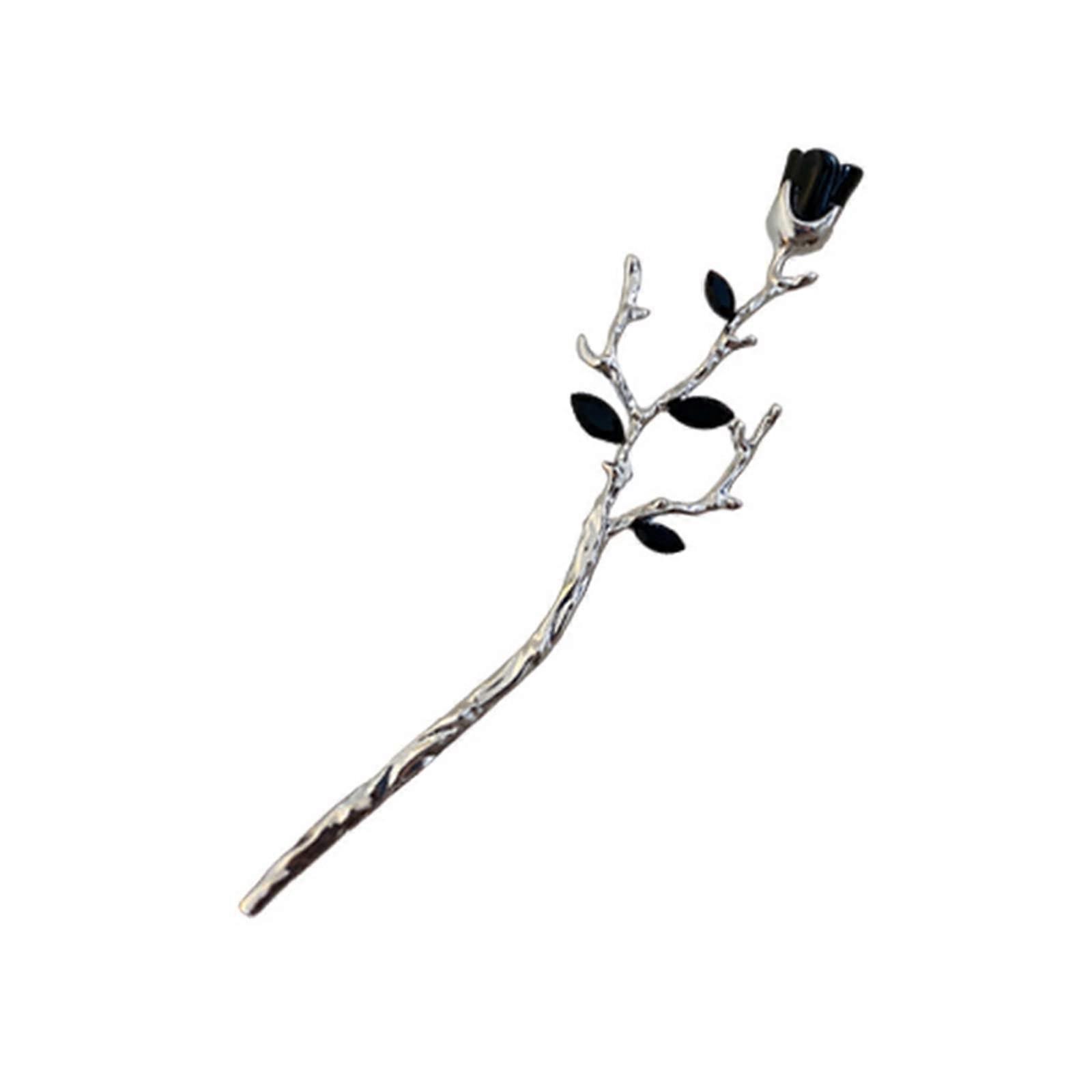 Schwarzes Haar Kohlfadenstäbchen Metall Haarnadel Rot Schwarz Rose Blumenhaarstangen Frauen Mode Schmuck Accessoire