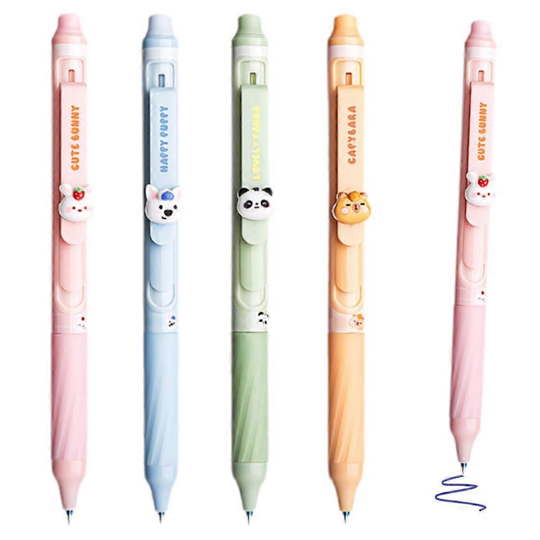 Erasable Gel Pen Set Of 4, 0.5 mm, Blue, Temperature-Sensitive Ink, Animal Design, School Office Supplies For Students