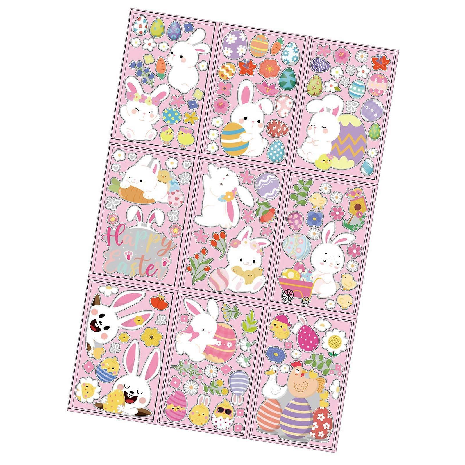 Easter Window Clings 9 Sheets Double Sided Cartoon Bunnies Eggs Chicks Stickers For Glass Windows Party Decor