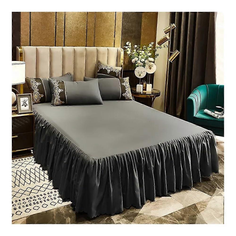 Non-Slip Mattress Cover, Fitted Sheet, Solid Color Bedspread, With Ruffles, 1 Piece, Gray 180x200 cm