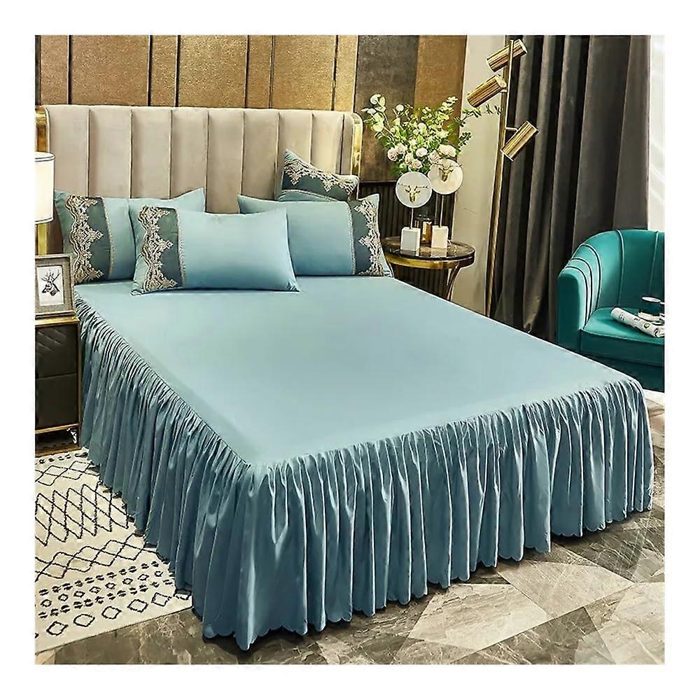 Bettrock Rutschfester Matratzenbezug 150 cm x 200 cm, Einfarbiger Blauer Bettrock mit Rüschen für Schlafzimmer