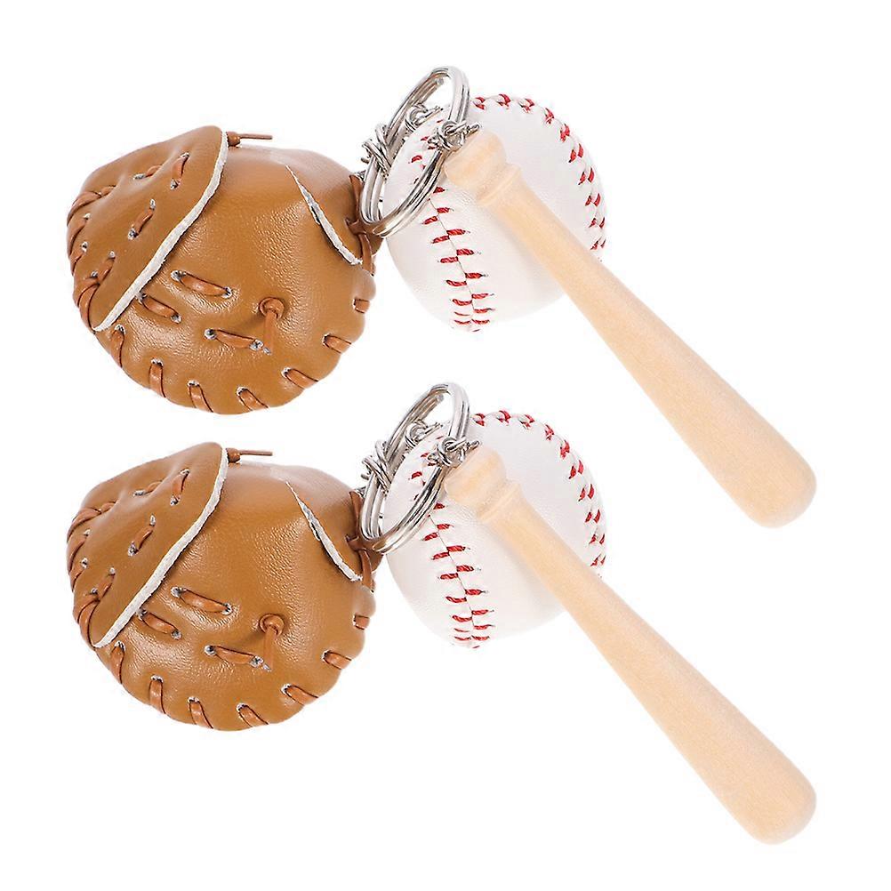 Baseball Keychain 2Pcs Multi Color PU Wood Material Baseball Themed for Decoration