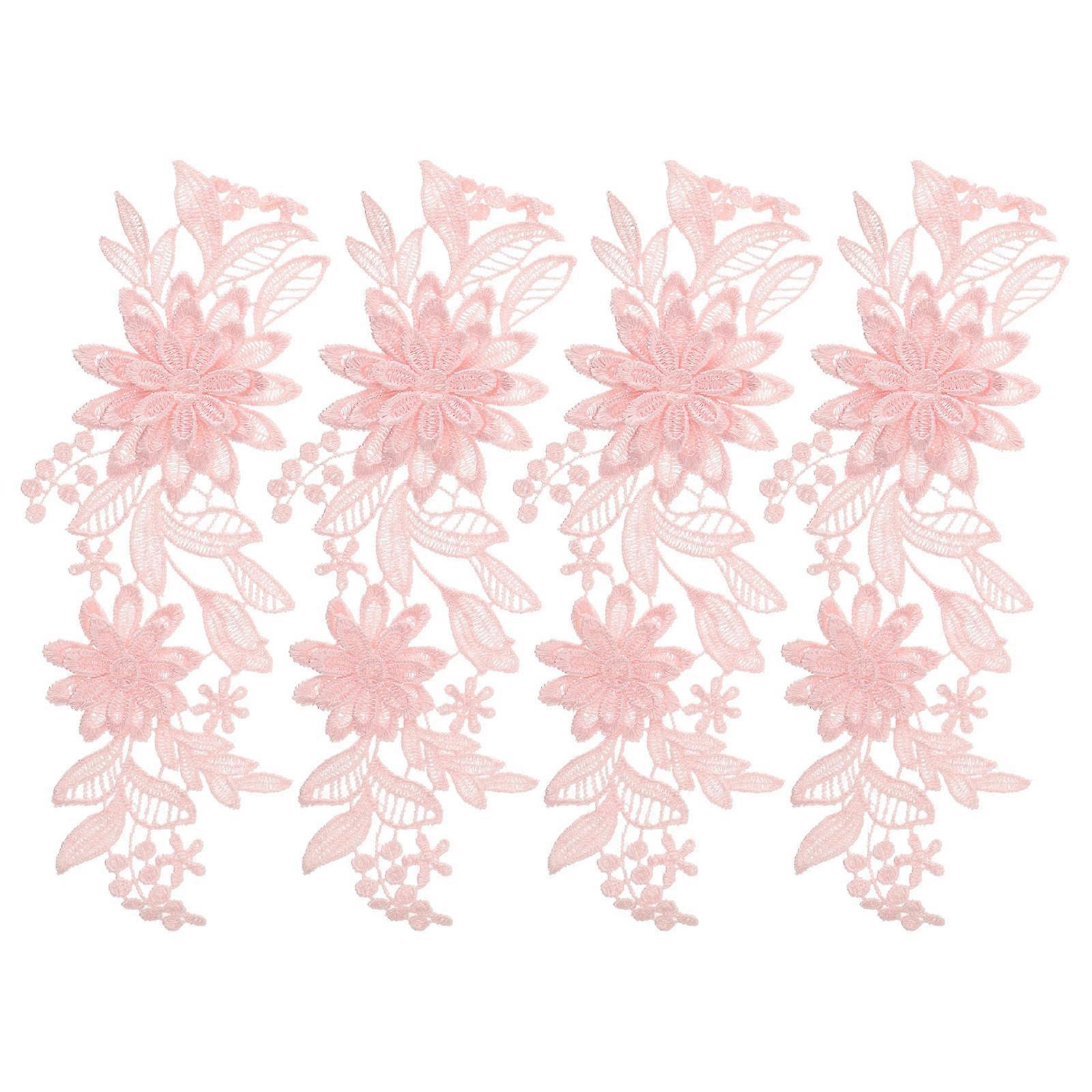 Lace Appliques Embroidery Flower Appliques Diy Wedding Dress Accessories Minimalist Design Pink 24.00X10.00X0.20CM Polyester Yarn Decorative 2 Pairs