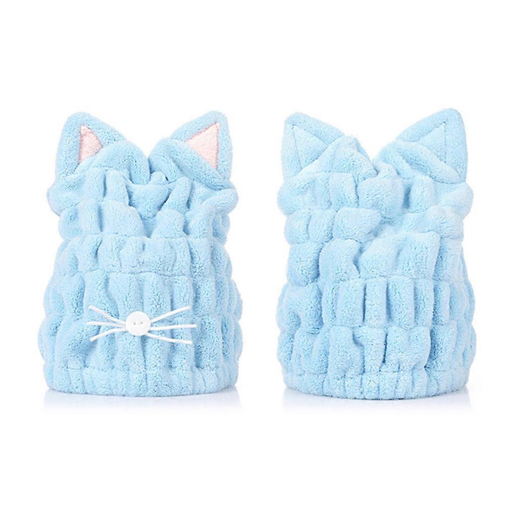 Shower Caps Cat Bath Ear Cover Hair Drying for Women Daily Use Blue Pink 2Set