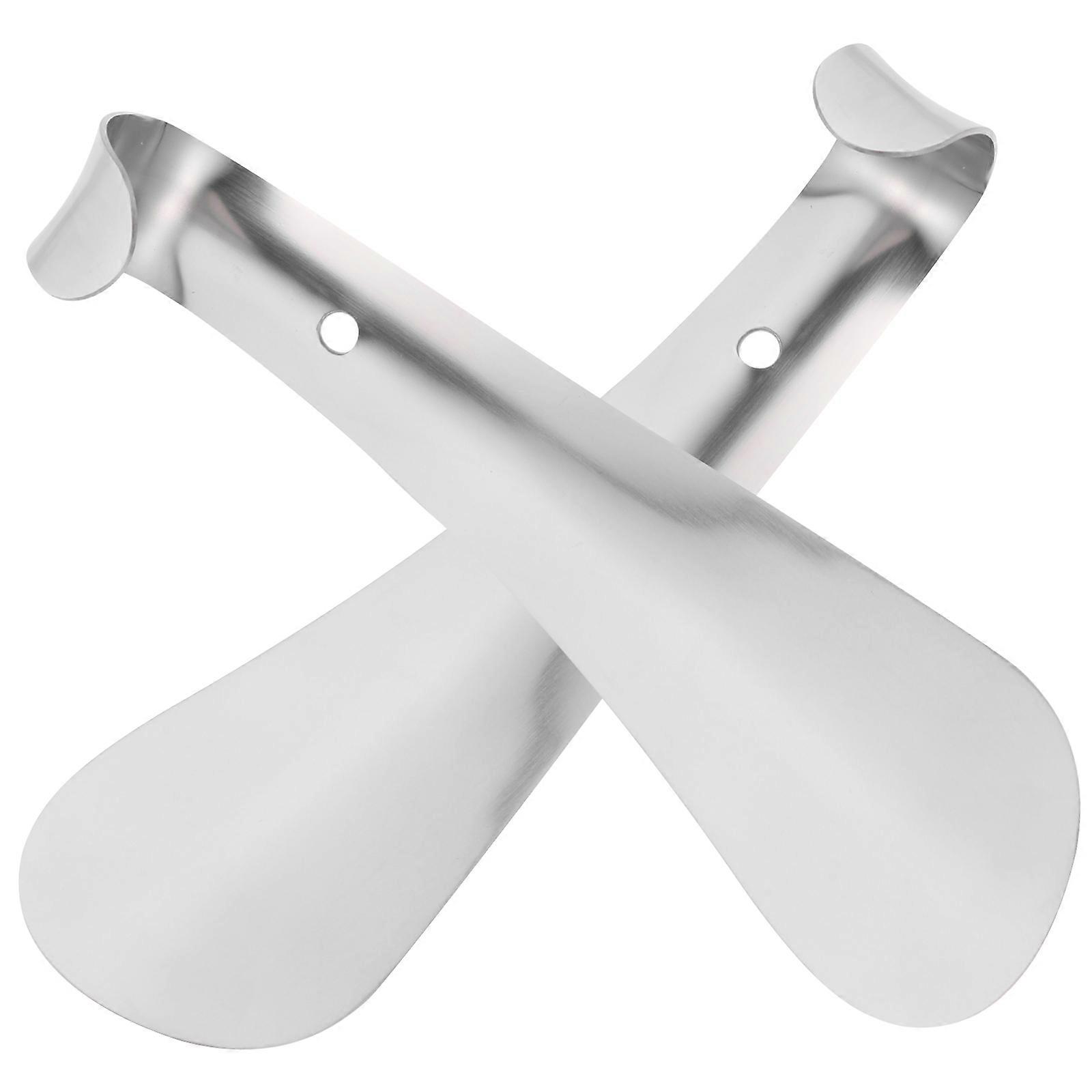 Extended Shoe Horn For Men Stainless Steel Shoes Lifter Tool Silver 14.5X4.5cm Home Office Travel 2Set