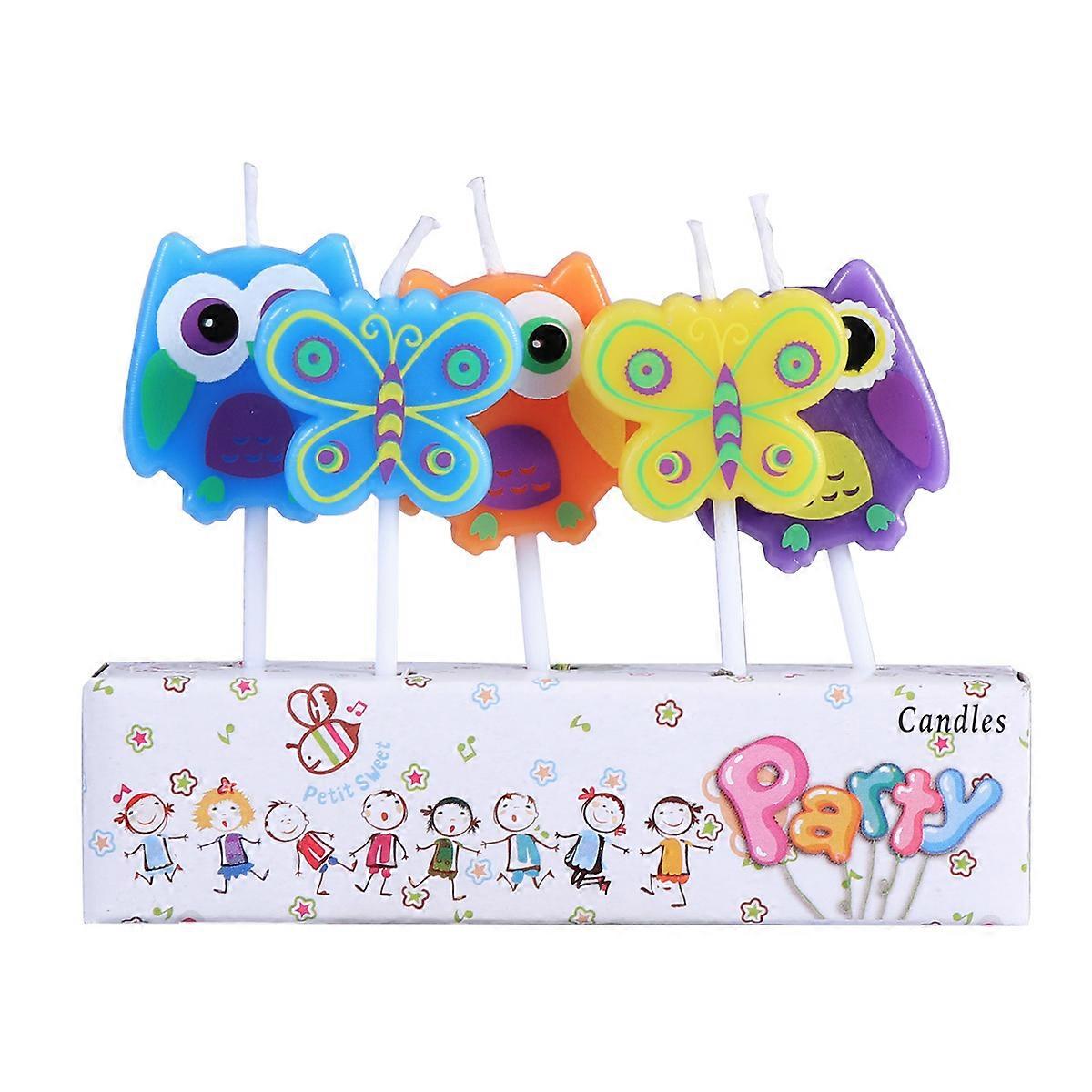 Birthday Cake Candles Animal Cupcake Toppers Cartoon Craft Owl Shape for Childrens Birthday Party 5Set