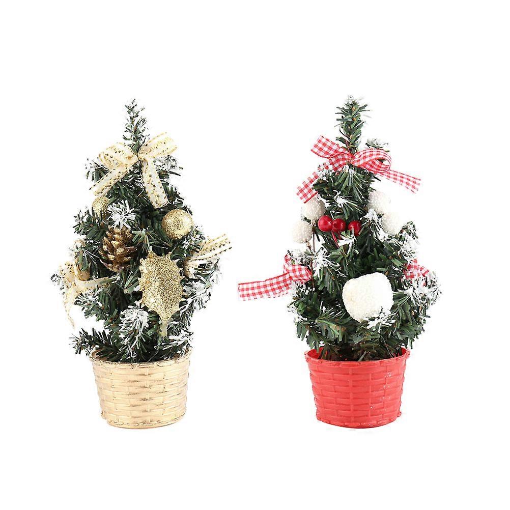 Miniature Tree Ornaments Mini Christmas Tree Decorative Trees for Home Decor Golden Desktop Decoration for Home Living Room 2Pack