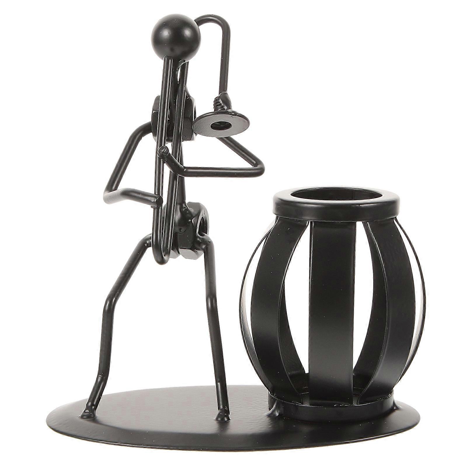 Trombone Shaped Metal Pen Holder Iron Pencil Container for Office Desk, Lightweight Sturdy Design, Unique Home Decoration, Keeps Desktop Tidy