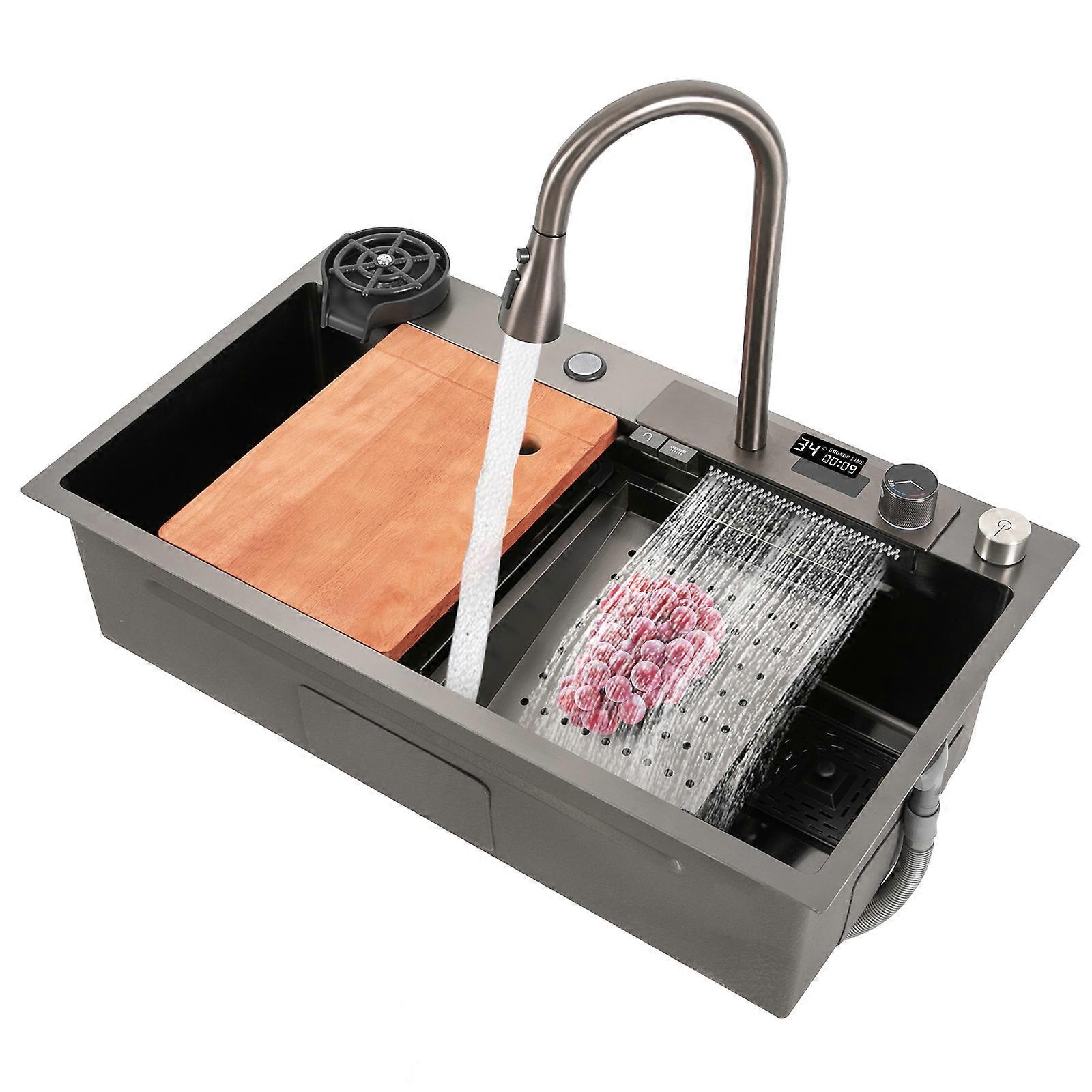 31.5 Inch Black Stainless Steel Kitchen Sink with Digital Pull-out Faucet Cutting Board