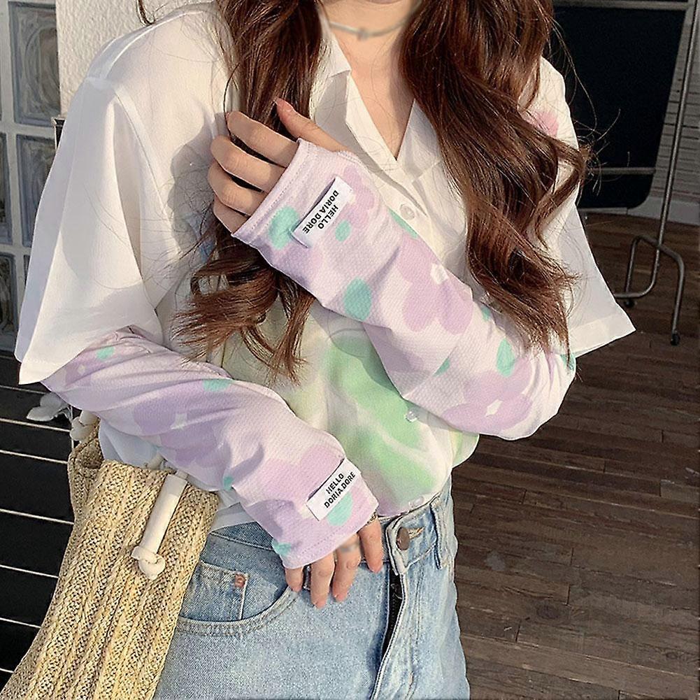Sun Protective Cycling Arm Sleeves with Cool Ice Silk Fabric&Half Finger Gloves
