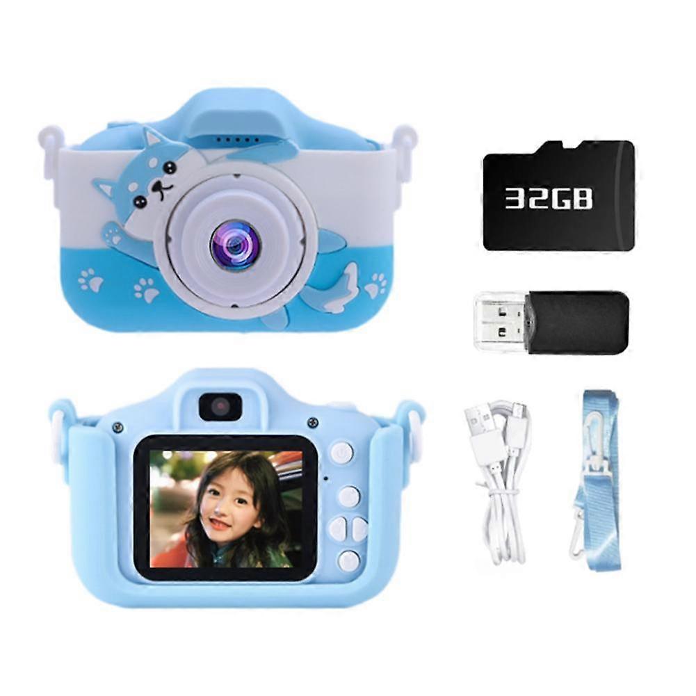 NameKids digital cartoon camera Material: ABS + silicone Colour: blue/pink Charging mode: USB Display: 2.0 inch IPS screen power Photo resolution: 7344*5504pX Battery capacity: 1000 mAh Product size: 100*70*50mm Pixel: 80 million pixels Video resolution: 1920*1080px Charging time: 1-2 hours Battery life: 2000+ photos, 2 hours of video recording Selfie Mode: The kids camera is equipped with new HD dual camera configuration to satisfy kids selfie fun, so they can't wait to explore the outside world. DIGITAL ZOOM FUNCTION: The kids digital camera achieves 4X digital zoom by long pressing the up button, kids can practice shooting beautiful scenes outdoors or indoors and capture distant landscapes effectively. Suitable for children to learn photography. MULTIPLE SCENE SELECTION: This kids camera has 18 kinds of interesting photo frames and 6 kinds of filters to choose from, allowing kids to give full play to their imagination and creativity, and realise their dream of being a little photographer. COMPACT AND PORTABLE: The kids digital camera weighs only 0.25kg. Equipped with a lanyard, easy to carry around, designed for children, you can hang the mini camera around the neck, and simply capture the scenery or animals in nature with your family, and experience the fun from nature. BEST GIFT FOR CHILDREN: The kids camera is made of high quality material, shockproof and environmentally friendly. Perfect for birthday, Christmas, holiday gifts for boys and girls aged 3-12. Product List 1 x Kids Camera 1 x Silicone camera bag 1 x Lanyard 1 x 32GB TF card (already installed in camera) 1 x SD card reader 1 x USB cable 1 x User Manual