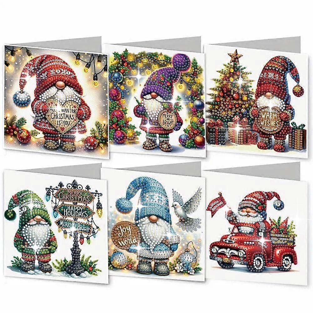 6 Pcs DIY Diamond Art Painting Greeting Card Kit Christmas, Diamond Art Christmas Birthday Holiday Foldable Thank You Cards Blessing Greeting Card, A