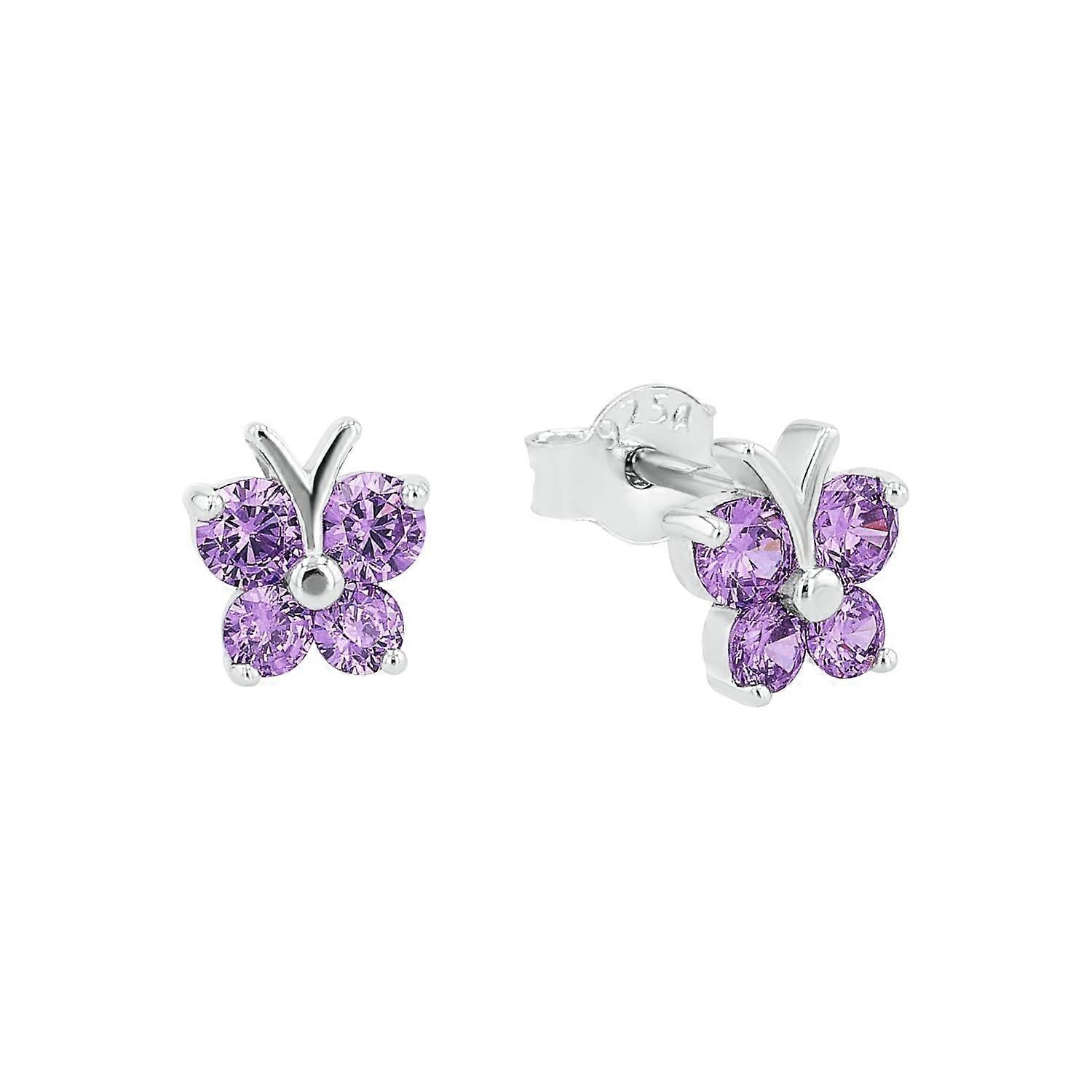 925 Sterling Silver Stud Earrings for Girls, Rhodium-Plated Children's Jewelry with Gemstone, Purple 0.7 cm, Gift for Daughter Granddaughter