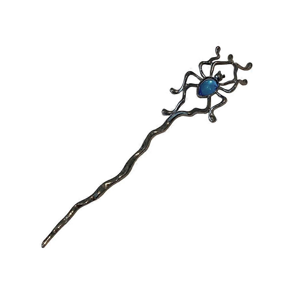 Hairpin Delicate Spider-Form With Moonstone, Qipao Chi-Pao Style Photography Prop, Black-Gray Spider Design