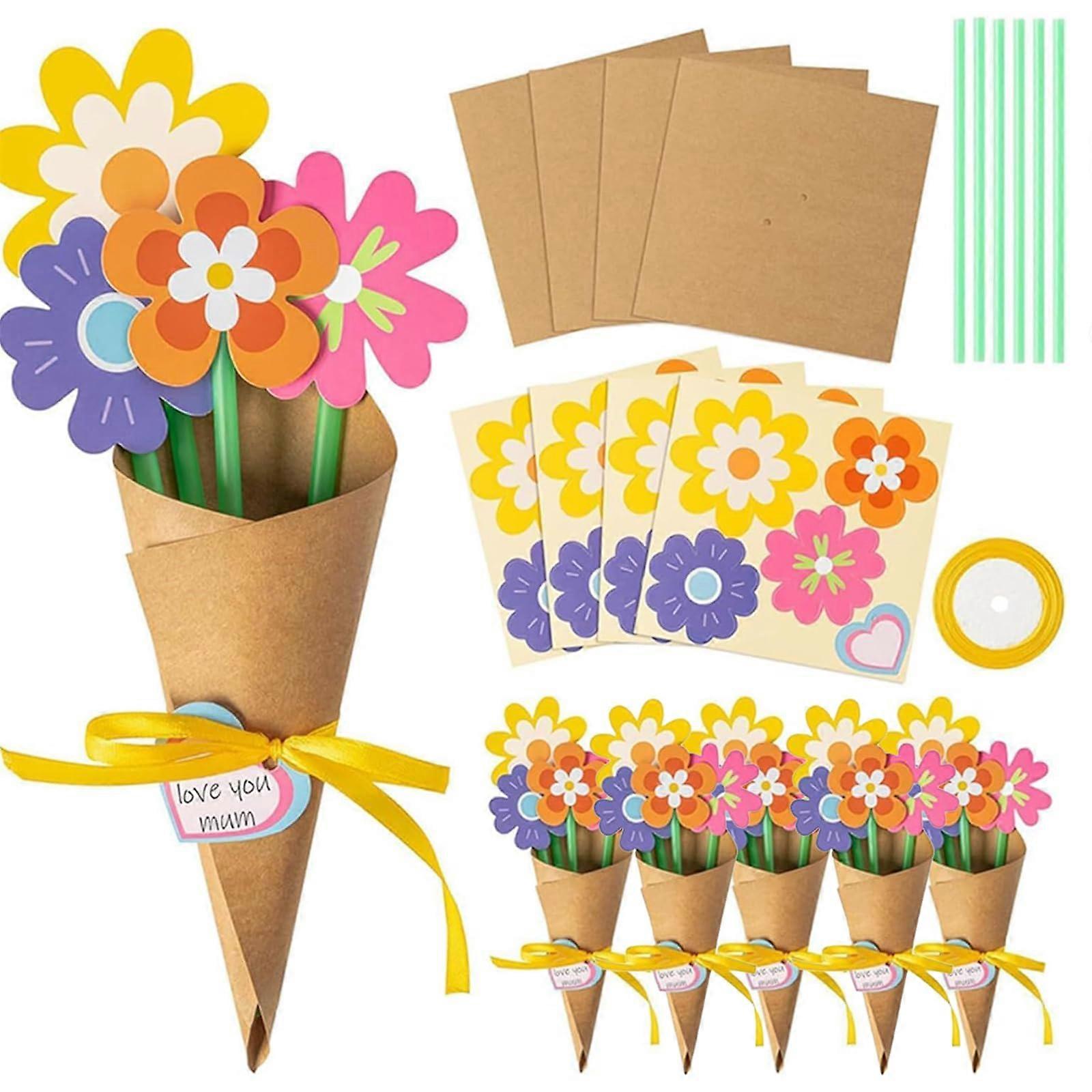 Mother's Day Craft Set for Kids, Flower Bouquet DIY Paper Crafts, Greeting Card Making Kit for School and Home Activities