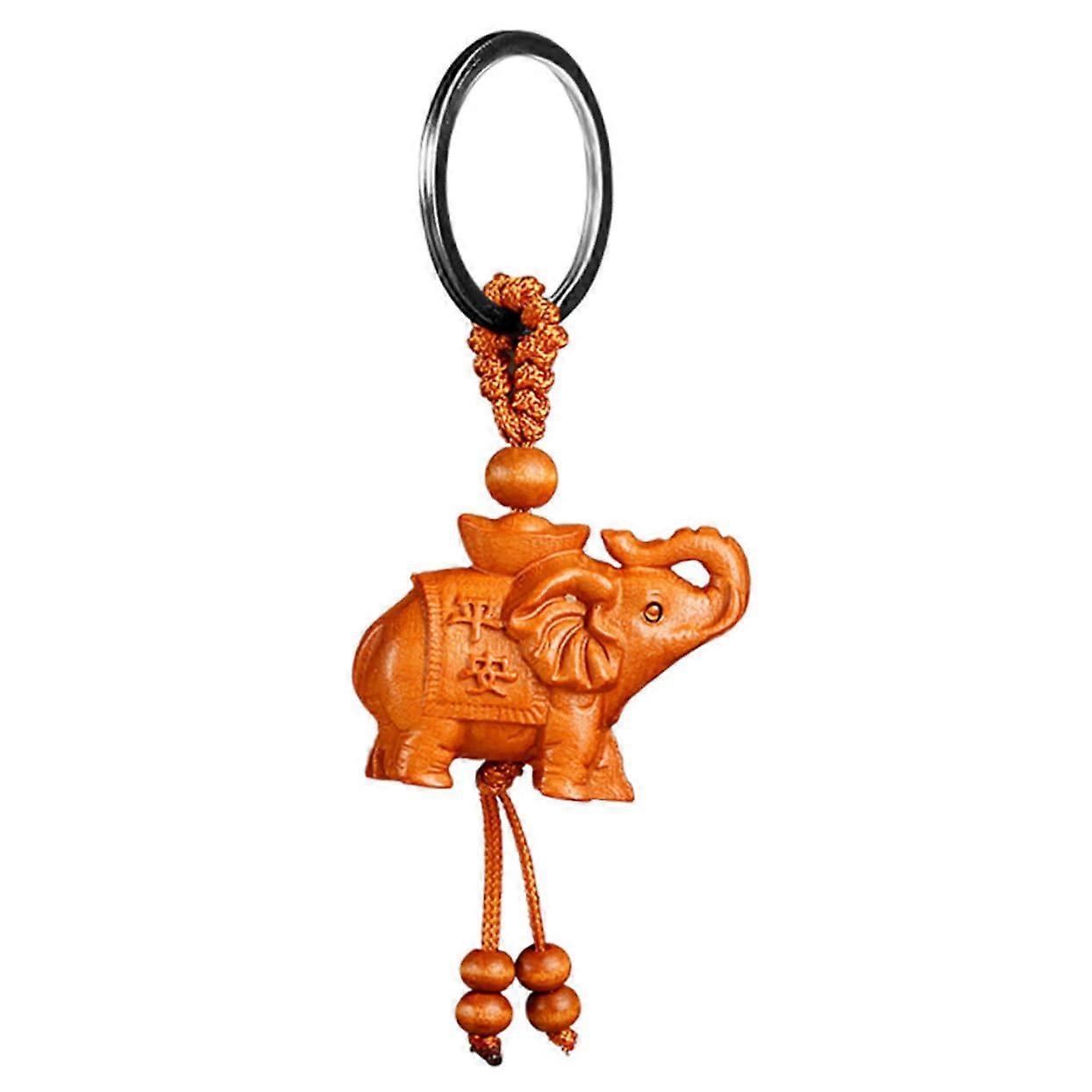 Wooden Elephant Keychain Pendant with Carved Animal Design for Keys and Bag Decoration