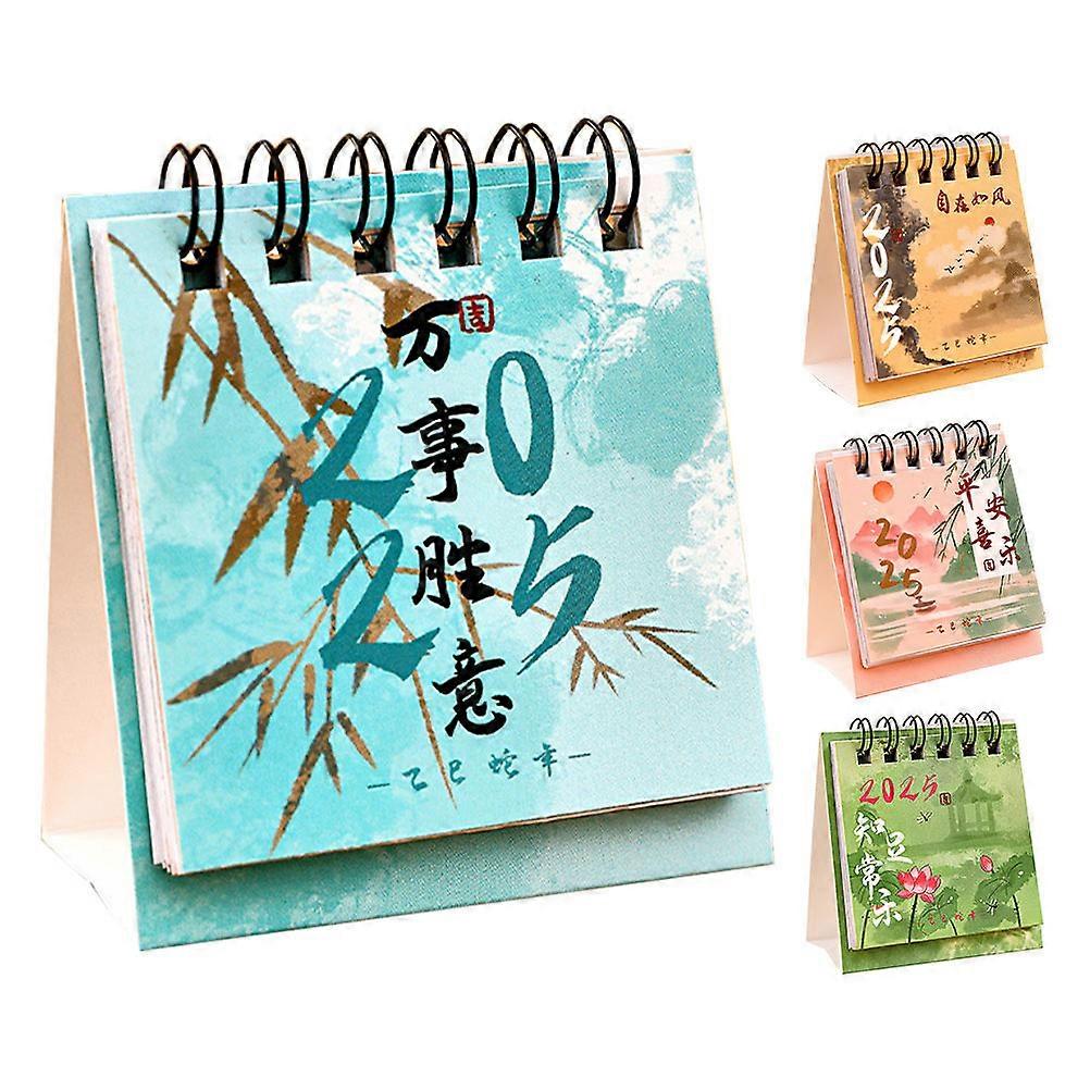 Chinese Style Mini Desk Calendar for Office 4Pcs Elegant Flip Calendar
