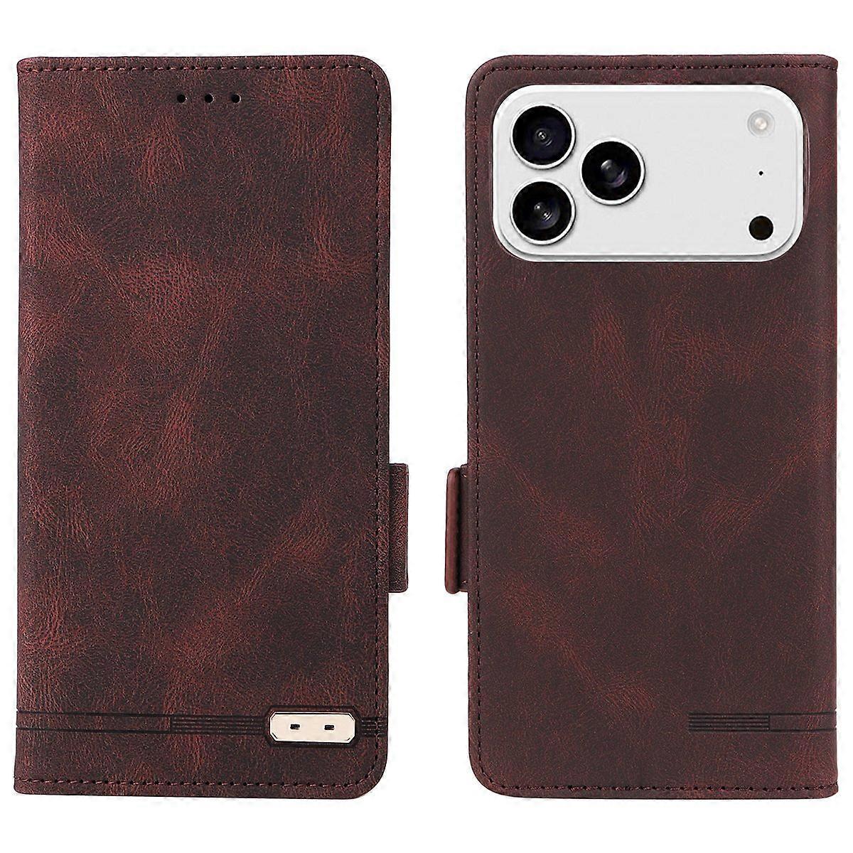 For iPhone 17 Pro Case Leather Wallet Flip Phone Cover with Hardware Decor - Coffee
