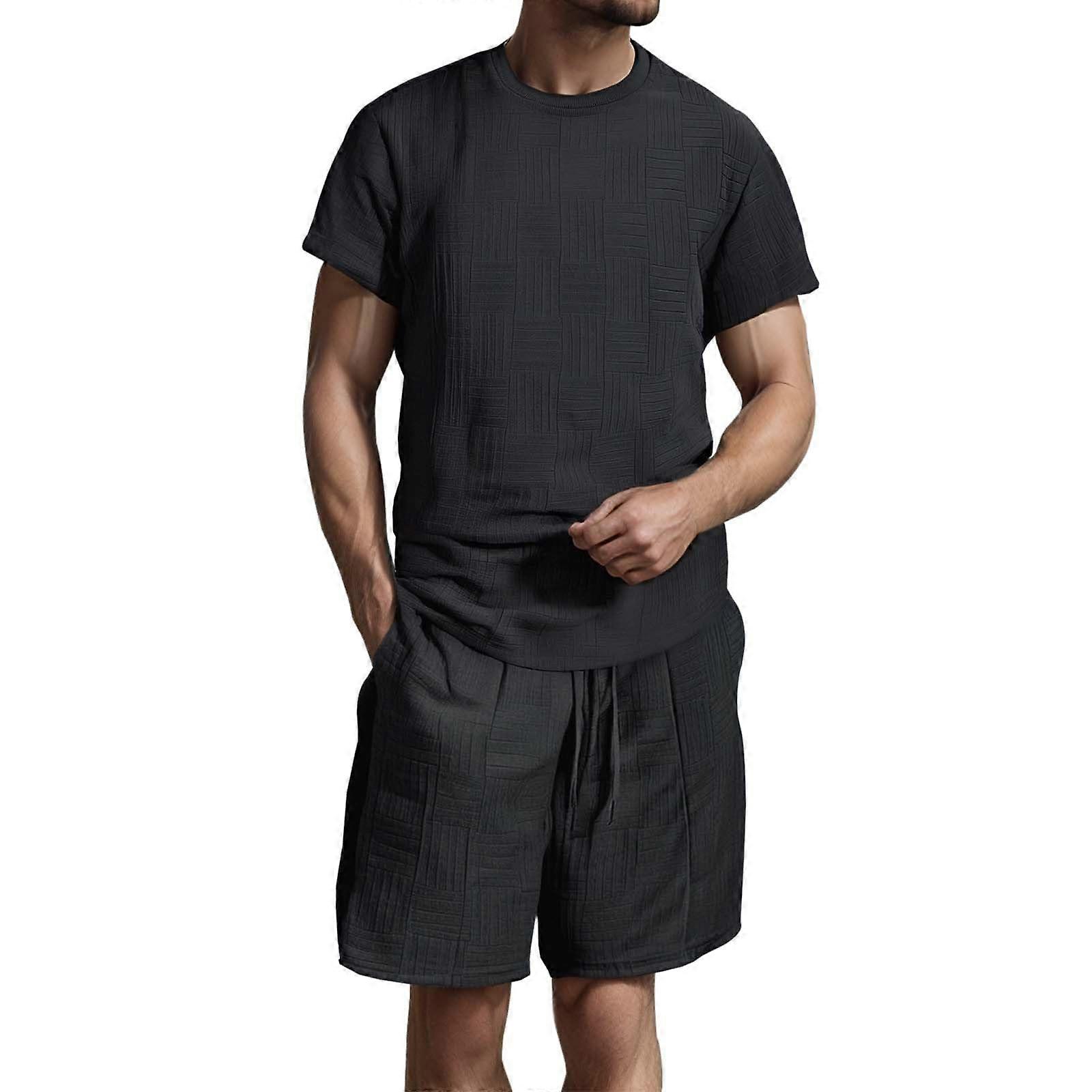 Jogging Suit Men's 2-Piece Summer Sports Suit Short Sleeve T-Shirt and Shorts Set Casual Tracksuit M Schwarz