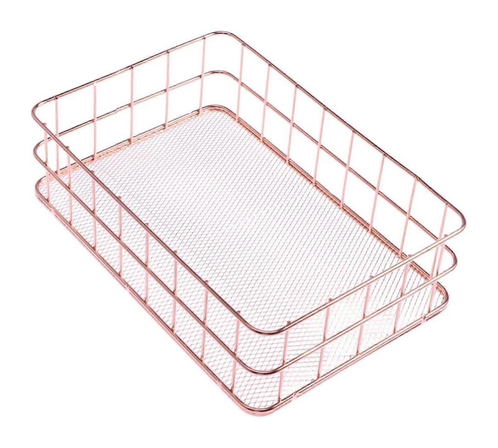 Metal Mesh Basket Gold Cube 24.5x16x6.5 cm Iron Wire Storage for Bathroom Makeup Desk Organizer