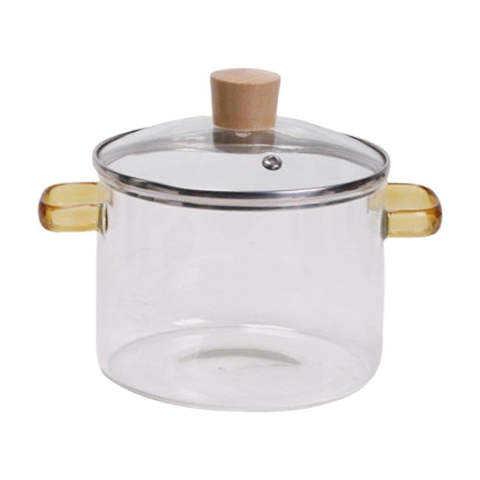 Glass Noodle Bowl Transparent Handmade Glass Cookware, Glass Pots For Cooking, Yellow Handle, Tea And Milk Pot