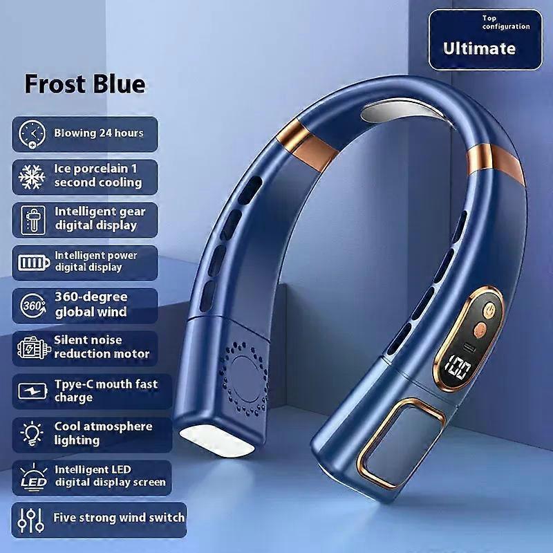 Ice porcelain cooling portable hanging neck fan, intelligent mute outdoor sports, rechargeable large wind, leafless small fan