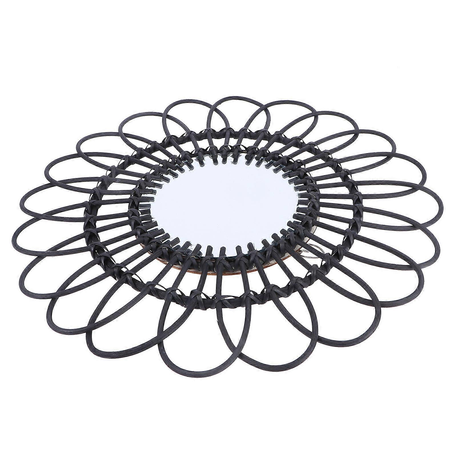 Rattan Decor Mirror Black Home Mirror Wall Hanging 1Pcs for Decoration