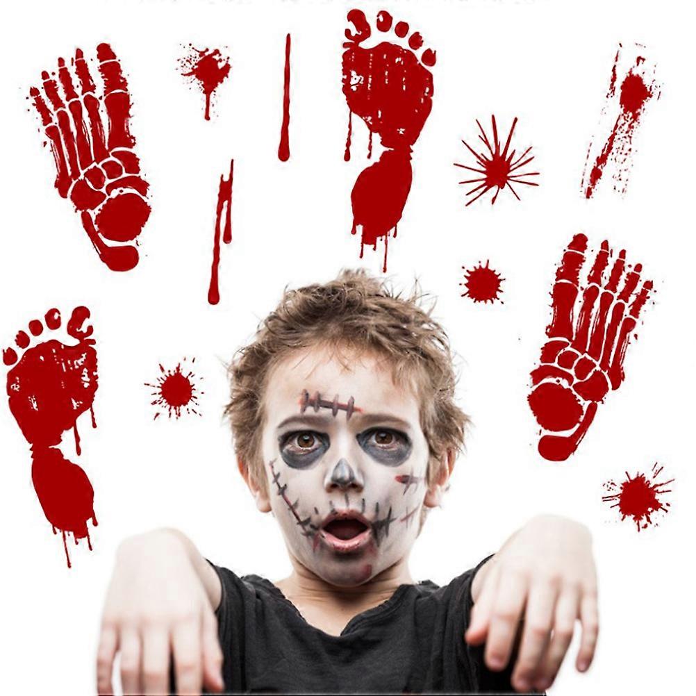 Halloween Wall Clings Scary Graffiti Stickers Red Blood Hand-Print Footprint 45x30cm 4Set