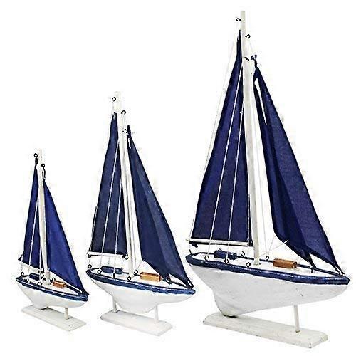 Nautical Detailed Antique Toy Boat Statue Figurine Set - Wooden Model 3 Sizes for Home Decor