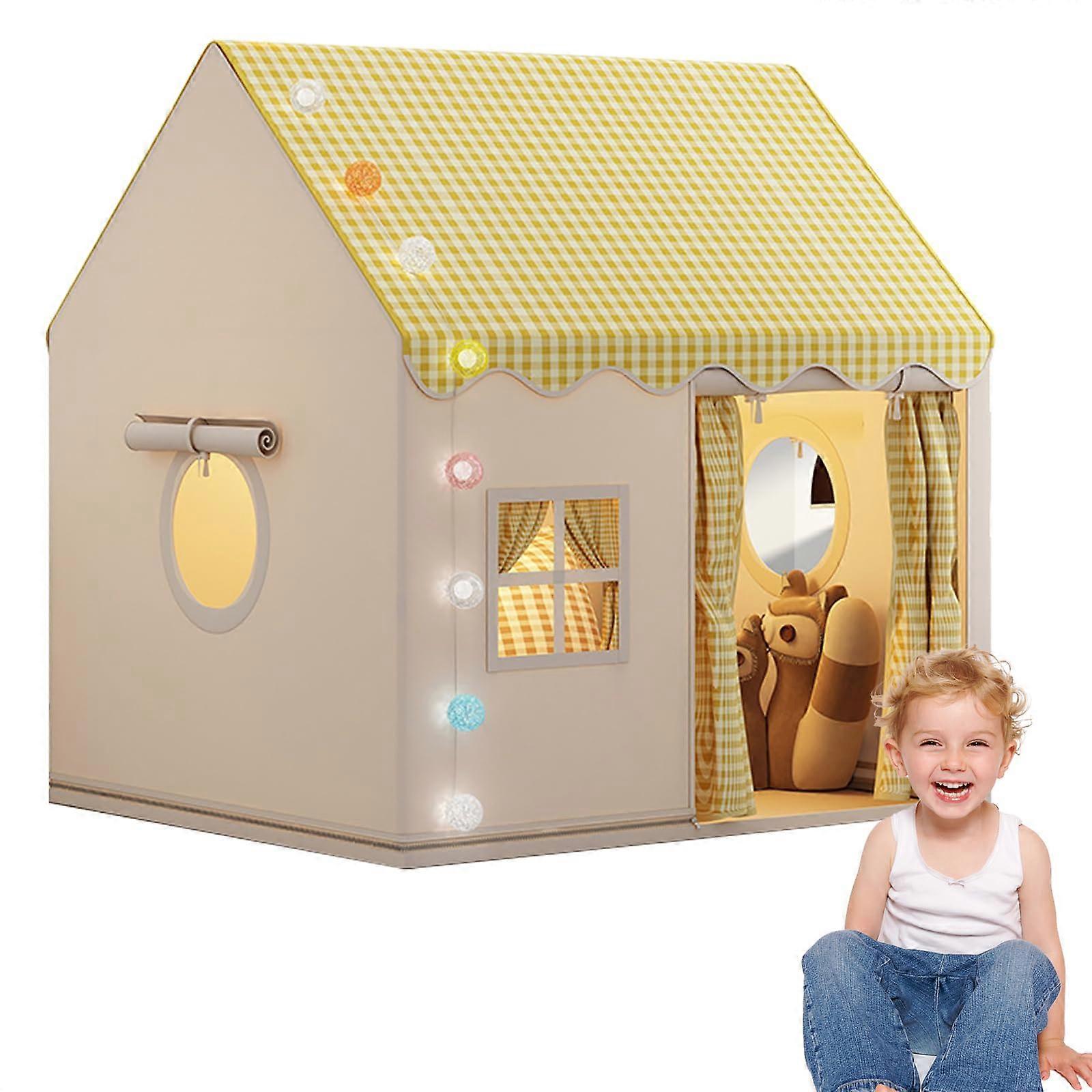 Children's Play Tent with LED Lights, Yellow Princess Playhouse for Indoor Use, Windows, Ages 3+, Decor for Kids' Rooms