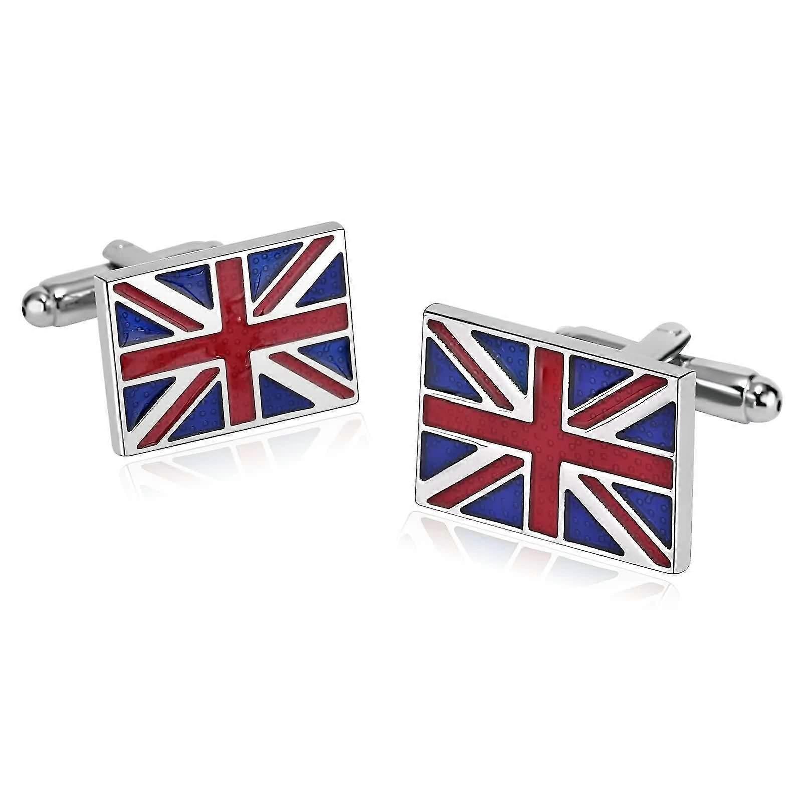 Cufflinks for Men Stainless Steel Rectangle UK Flag Wedding Accessories Gift Set 2x1.4cm