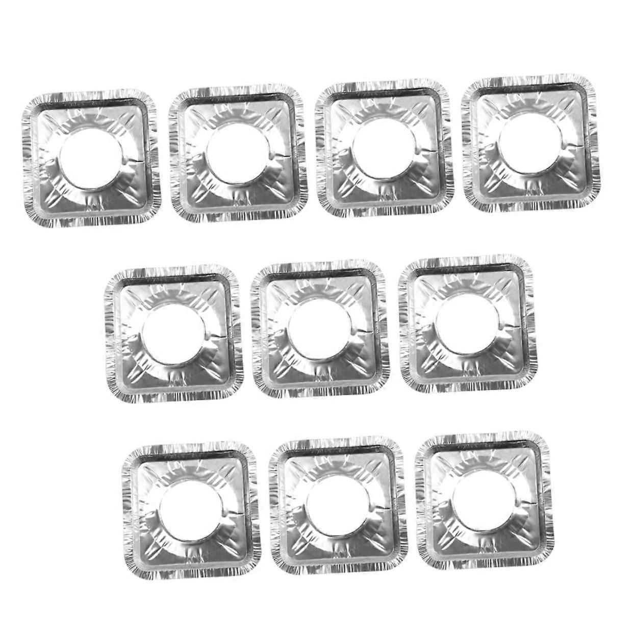 Heat-Resistant Aluminum Foil Gas Stove Covers, 10-Piece Square Reusable Cleaning Pads, Oil and Dirt Guard for Gas Stoves