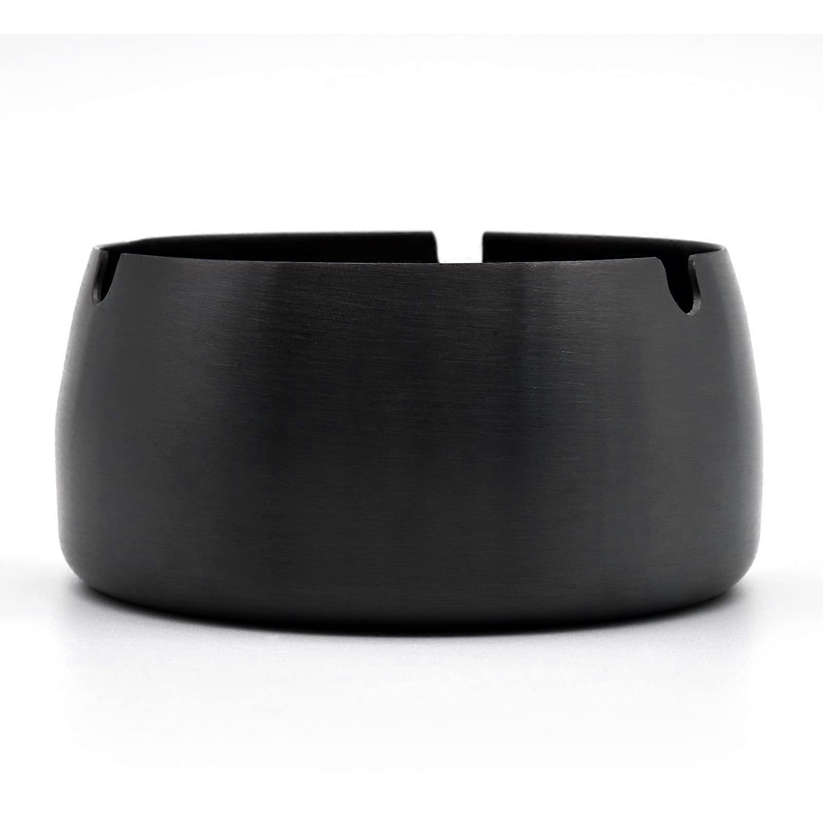Stainless Steel Ashtray Round Black 10cm for Outdoor Indoor Use Home Office Hotel Bar Restaurant