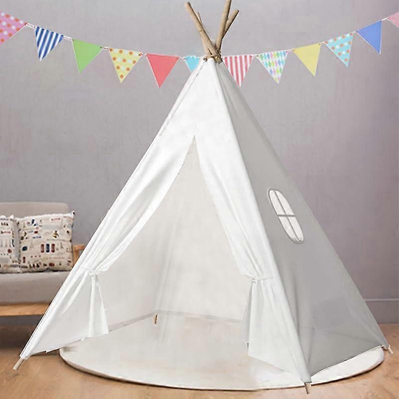 Kids Teepee Play Tent with Colorful Flags, Foldable Indoor Outdoor Polyester Playhouse for Girls and Boys, White A